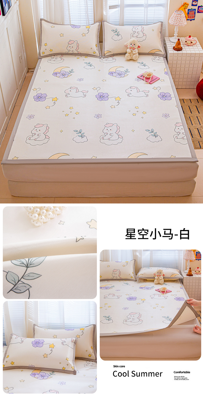 当前位置: 91家纺网 > 商品网购 > 床上用品 > 凉席 > 冰丝席 > 富馨莱 2026新款冰丝凉席平铺款支持一件定制定做 星星小马-白