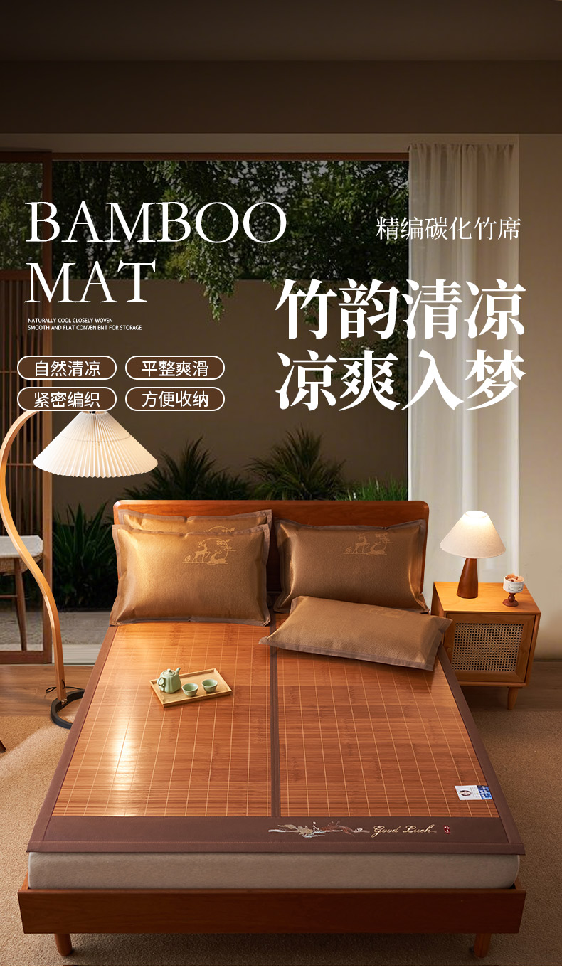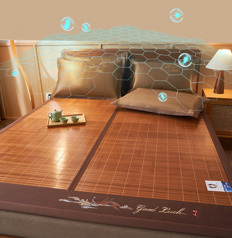 • 91家纺网 家纺一手货源 找家纺 鑫琪莱家纺 2025新款双面竹席冰丝席竹凉席学生宿舍席子 诗礼-锦鲤