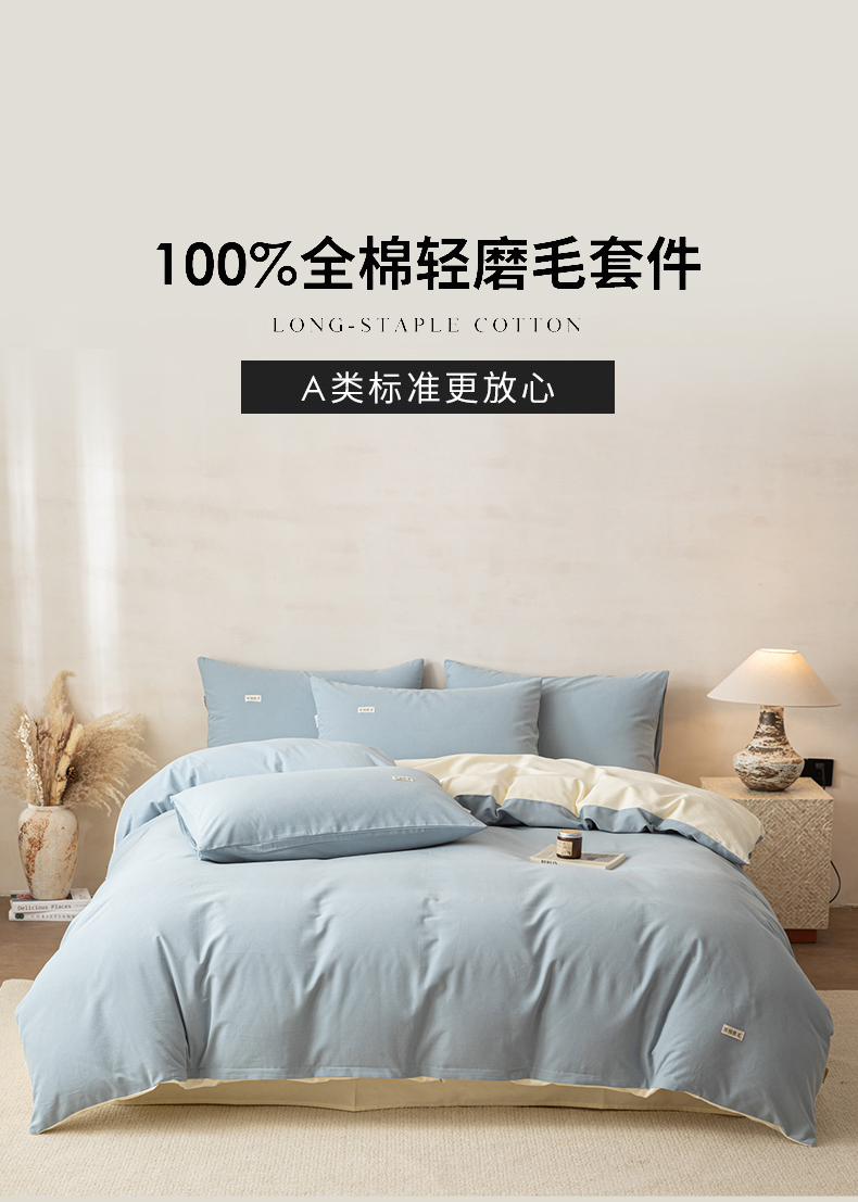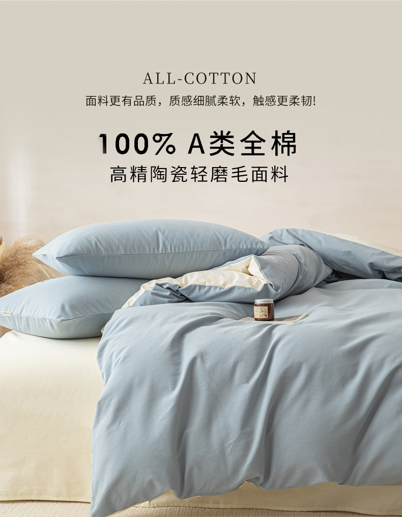 当前位置: 91家纺网 > 商品网购 > 床品套件 > 四件套 > 全棉普通四件套 > 眠博士 2026新款A类纯色全棉磨毛四件套-陶瓷 套件-陶瓷浅蓝+奶白