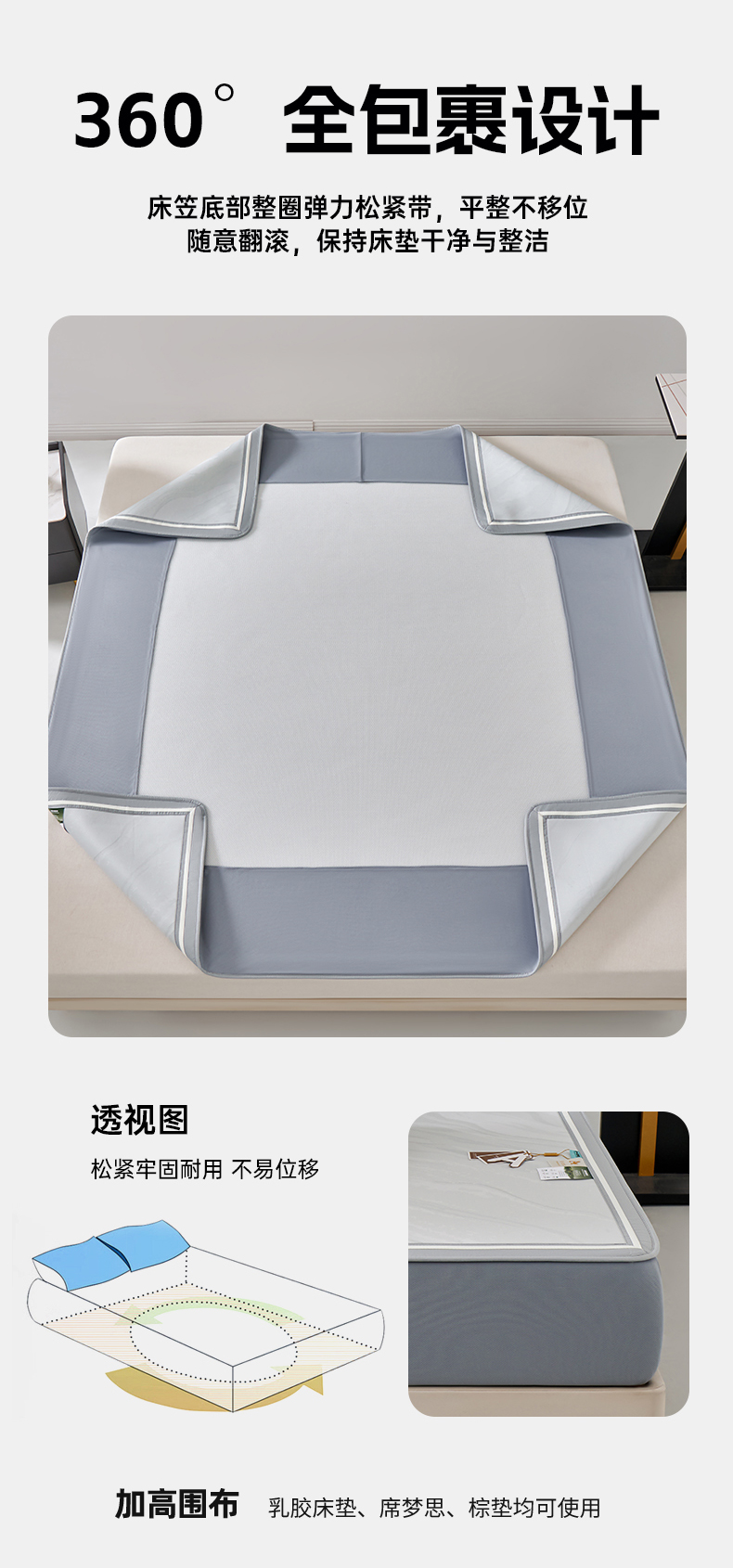(总)小牛席业 2026春夏新款【实拍风格】PE凉感凉席席子-轻奢赫本(床笠款),轻奢赫本-灰色,轻奢赫本-粉色,轻奢赫本-蓝色,轻奢赫本-香槟