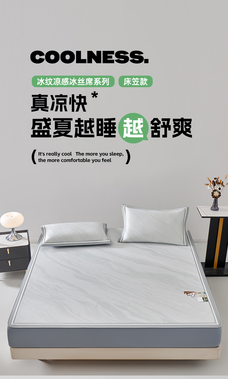 商品名称:(总)小牛席业 2026新款冰纹凉感冰丝席席子凉席-【床笠款】凉席藤席冰藤席冰丝席竹席乳胶席豆豆席