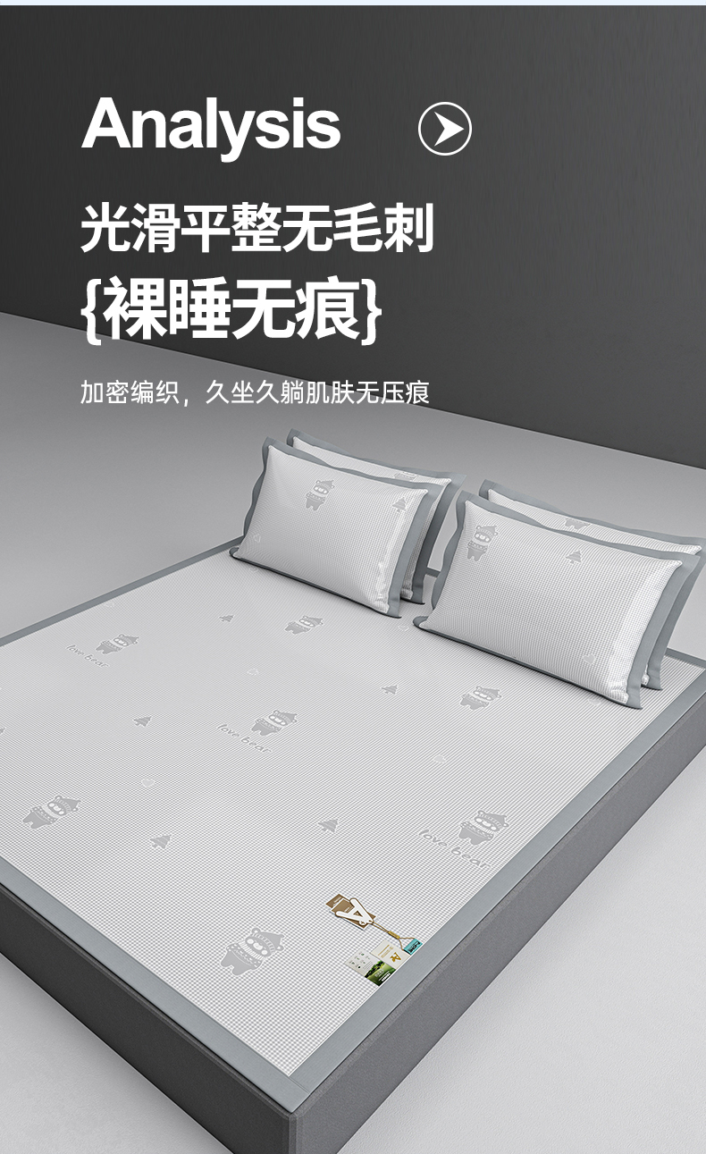 小牛席业 2026新款【建模风格】双PE高凉感-韩版小熊提花冰丝席席子凉席 抹茶