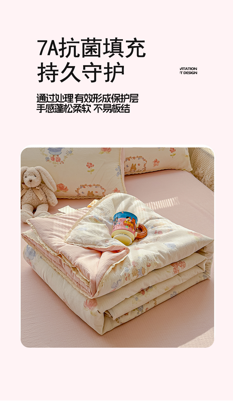 商品名称:贝扬思家纺 2026新款云感双层纱抗菌花边夏被-晴风系列 晴风-浪漫兔兔