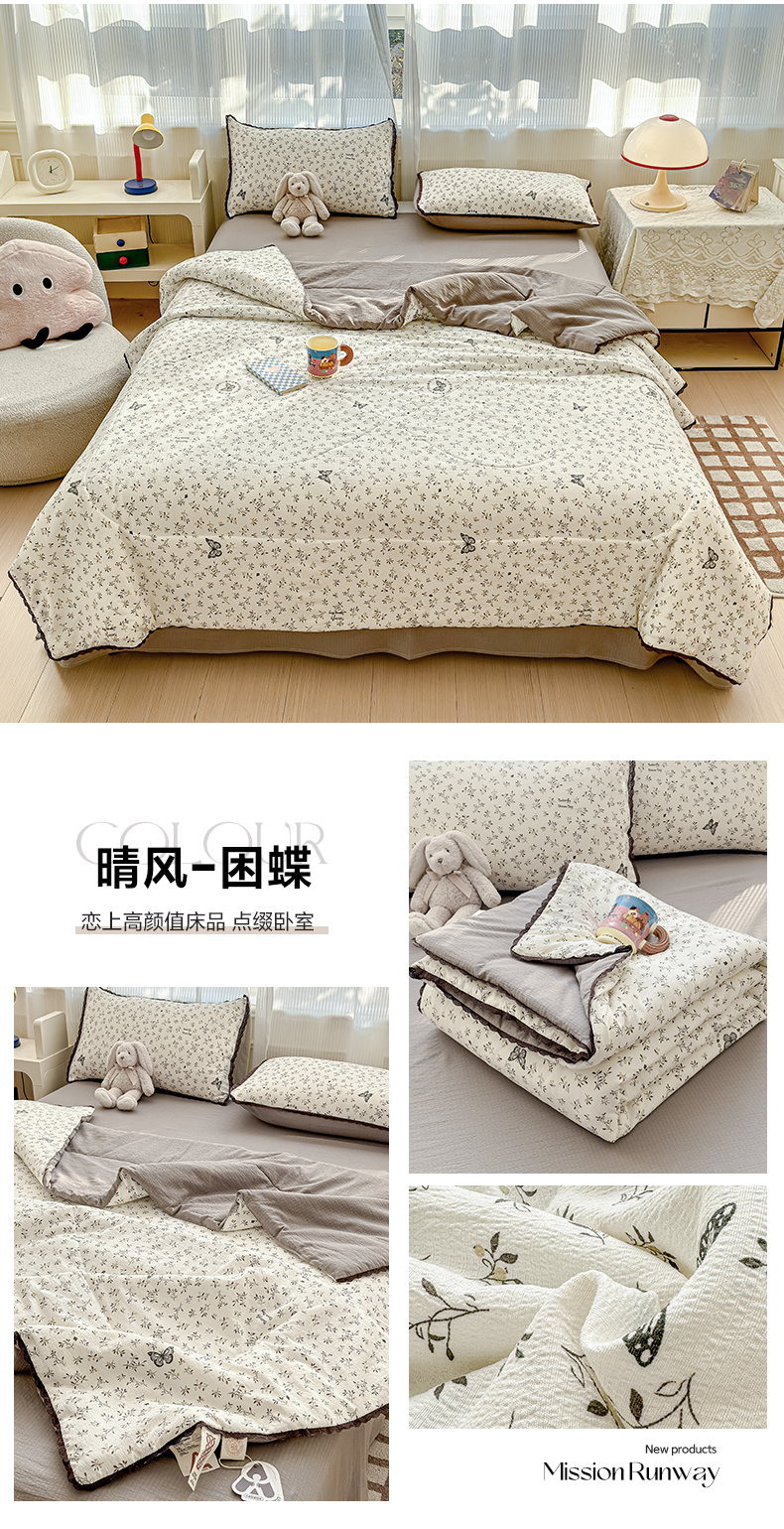 (总)贝扬思家纺 2026新款云感双层纱抗菌花边夏被-晴风系列,晴风-春日小花,晴风-动物游园,晴风-海盐汤圆,晴风-花漾集,晴风-镜子里的兔,晴风-困蝶,晴风-浪漫兔兔,晴风-梦境之间,晴风-葡萄多多,晴风-俏皮狗,晴风-清风与雾蓝,晴风-晴天小猫,晴风-苏瑾,晴风-甜橙花事,晴风-童话花岛,晴风-童年木马,晴风-像素小猫,晴风-序曲粉,晴风-薰衣草,晴风-樱桃奶球,晴风-摘星,晴风-竹歆花语