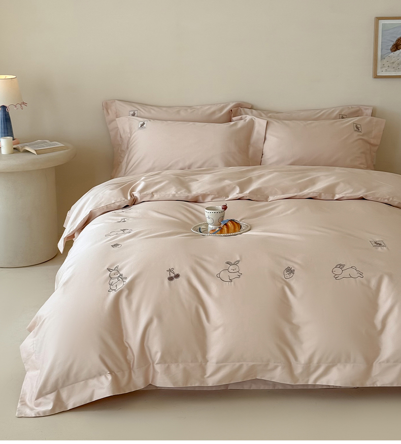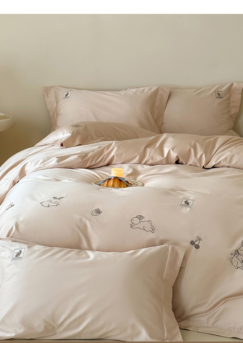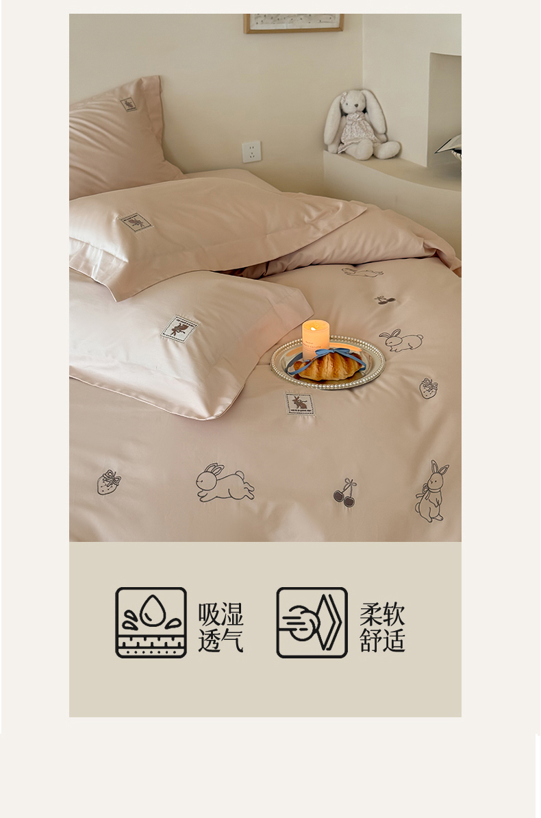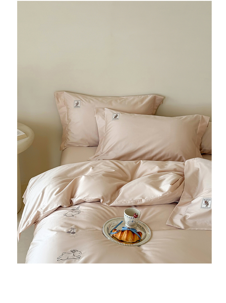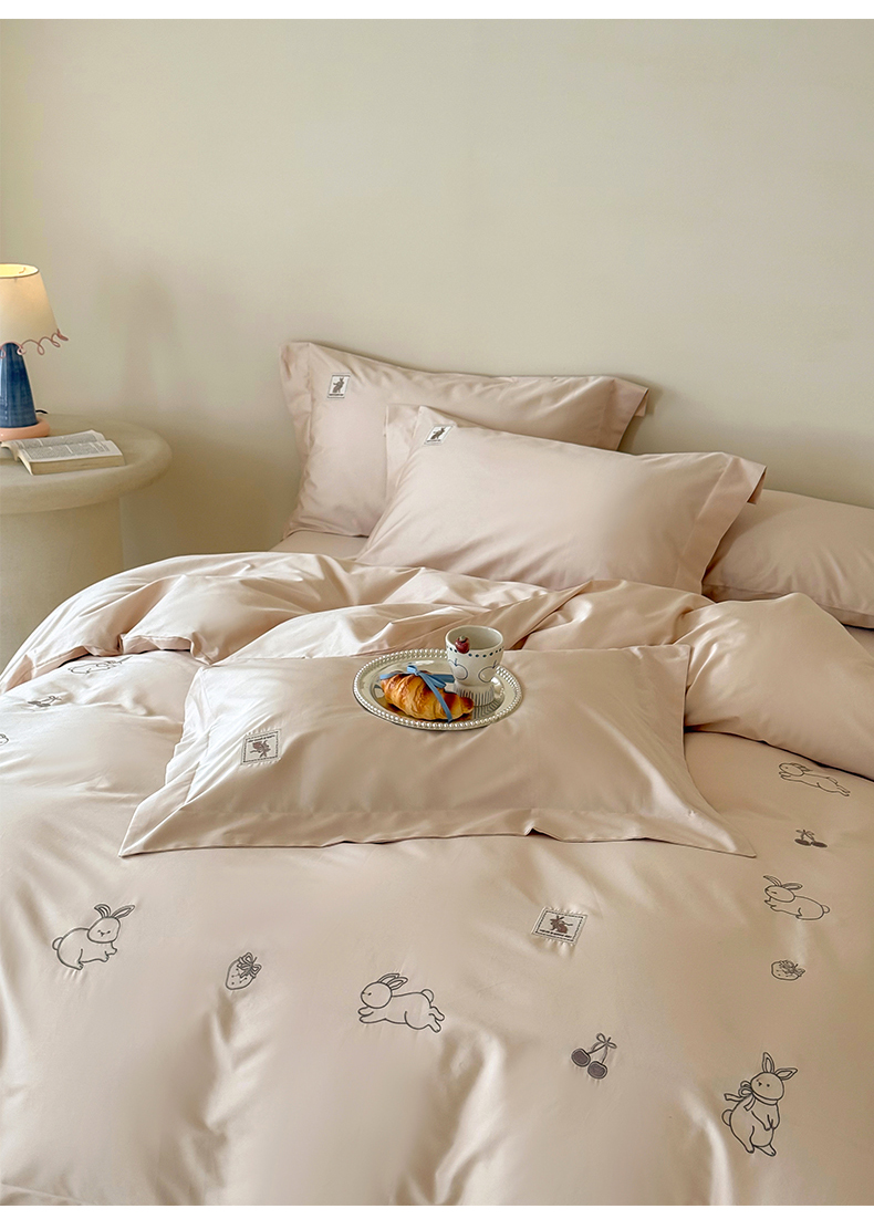 (总)名品优仓 2026新款长绒棉50s全棉纯棉刺绣宽边款四件套-米豆兔,米豆兔-浅妃灰,米豆兔-柔雾粉,米豆兔-森林绿,米豆兔-雅灰粉