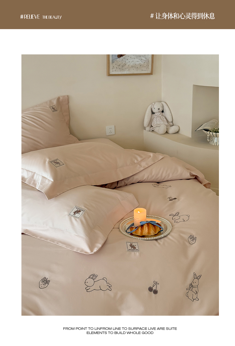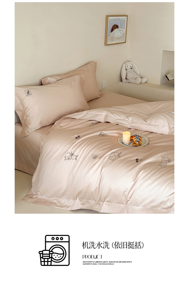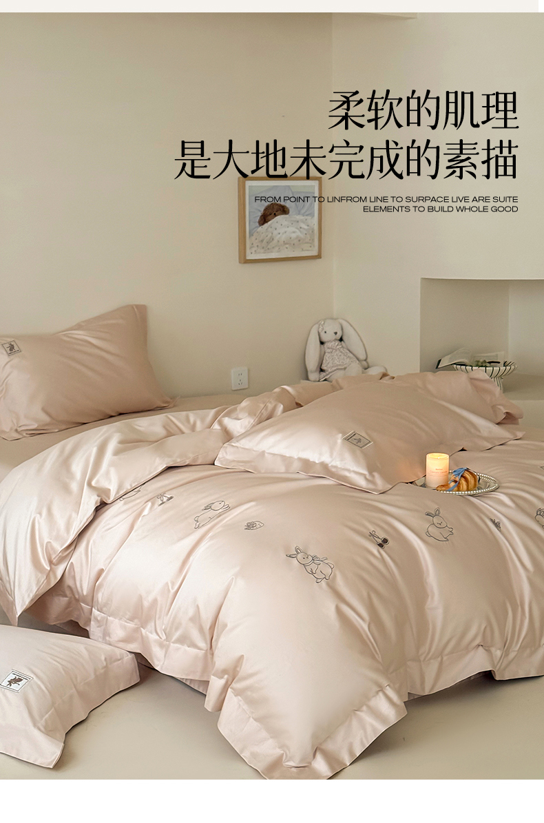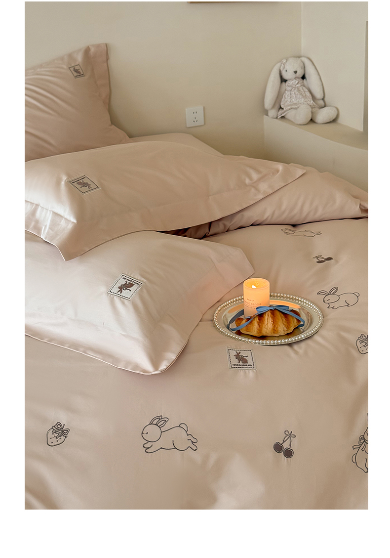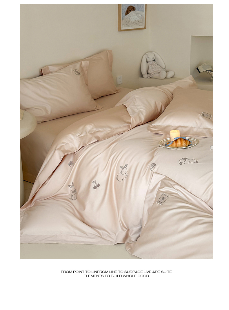 (总)名品优仓 2026新款长绒棉50s全棉纯棉刺绣宽边款四件套-米豆兔,米豆兔-浅妃灰,米豆兔-柔雾粉,米豆兔-森林绿,米豆兔-雅灰粉