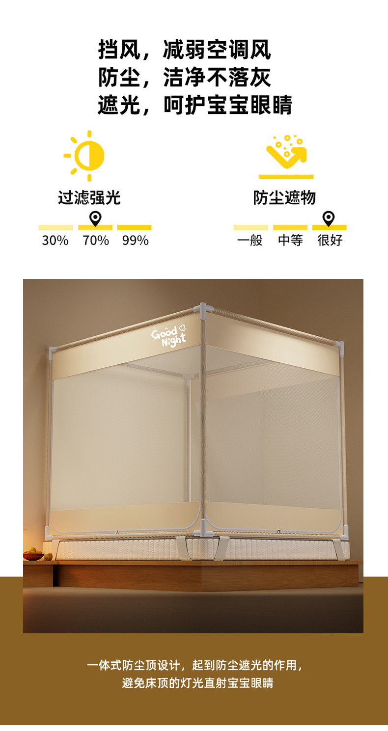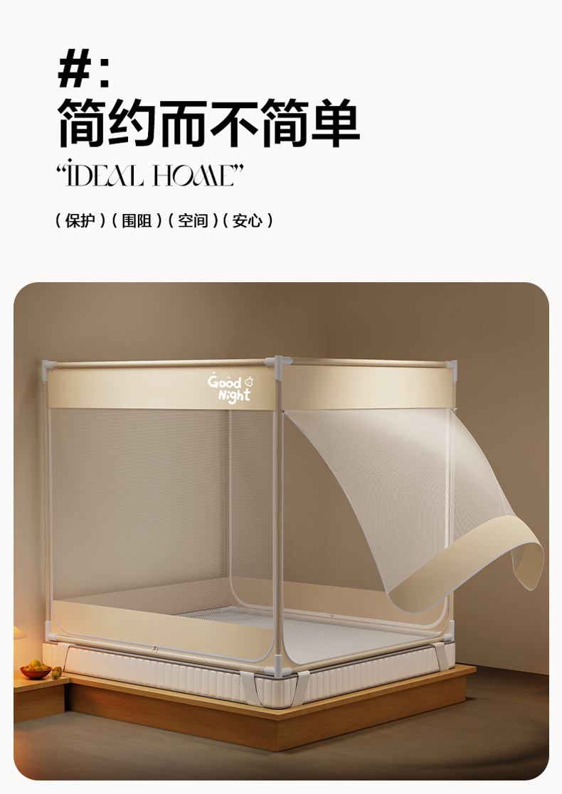 • 91家纺网 家纺一手货源 找家纺 壹和 2026新款坐床蚊帐外穿杆全底-有收纳袋-防摔蚊帐-自连接烤漆支架 米-字母
