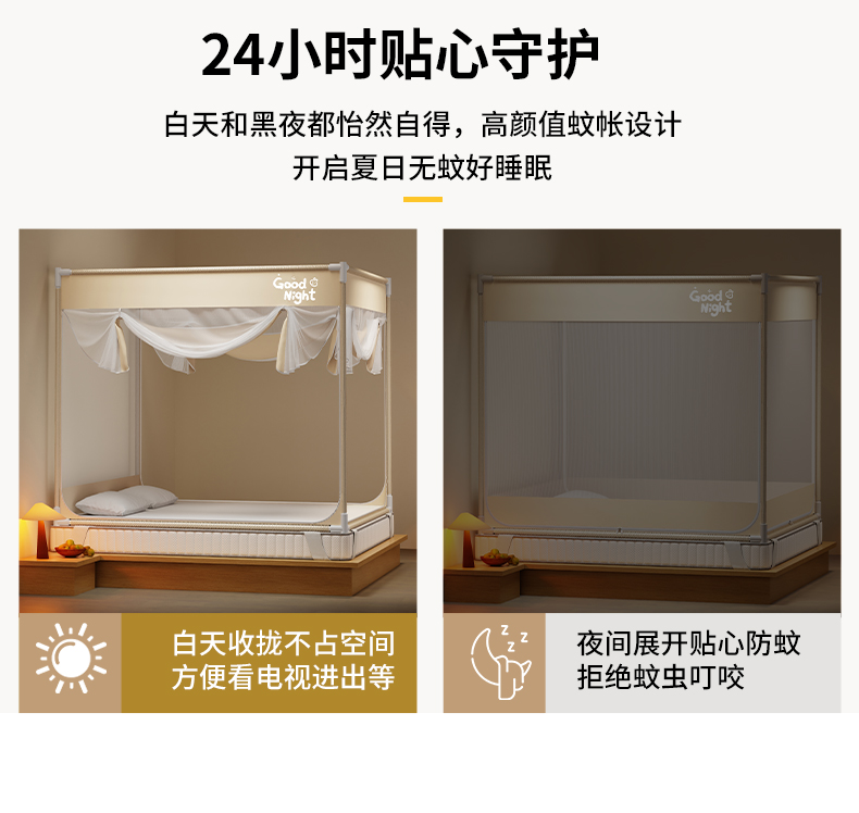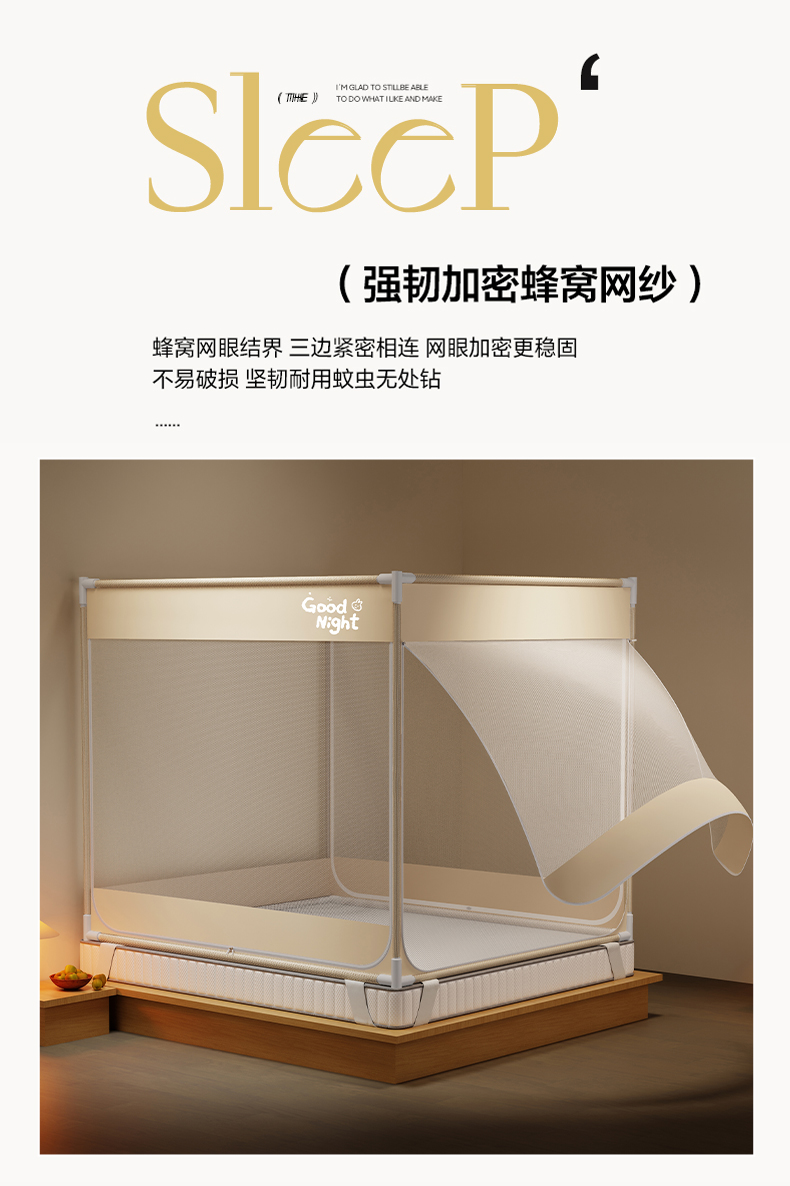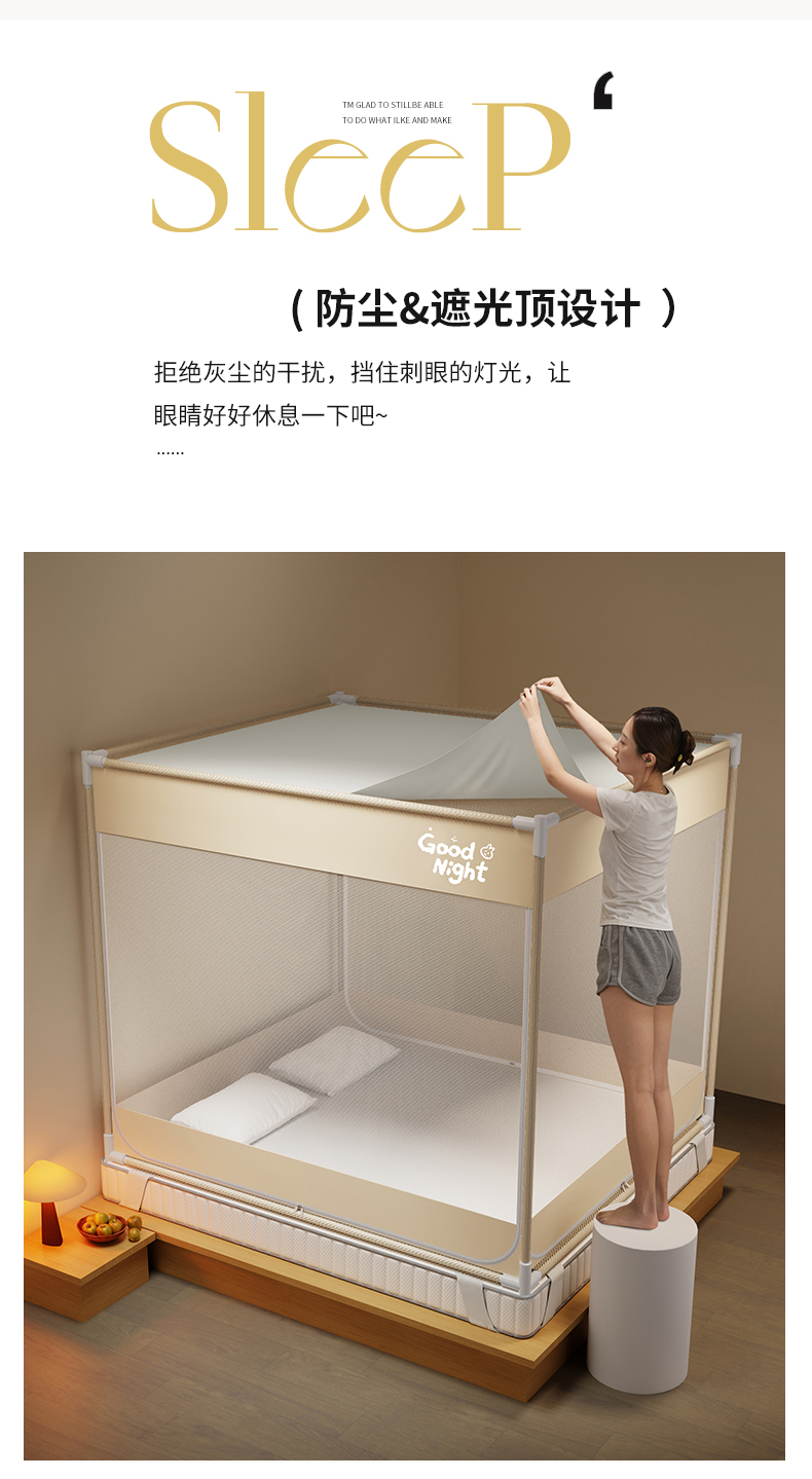 当前位置: 91家纺网 > 商品网购 > 床上用品 > 蚊帐 > 壹和 2026新款坐床蚊帐外穿杆全底-有收纳袋-防摔蚊帐-自连接烤漆支架 米-字母