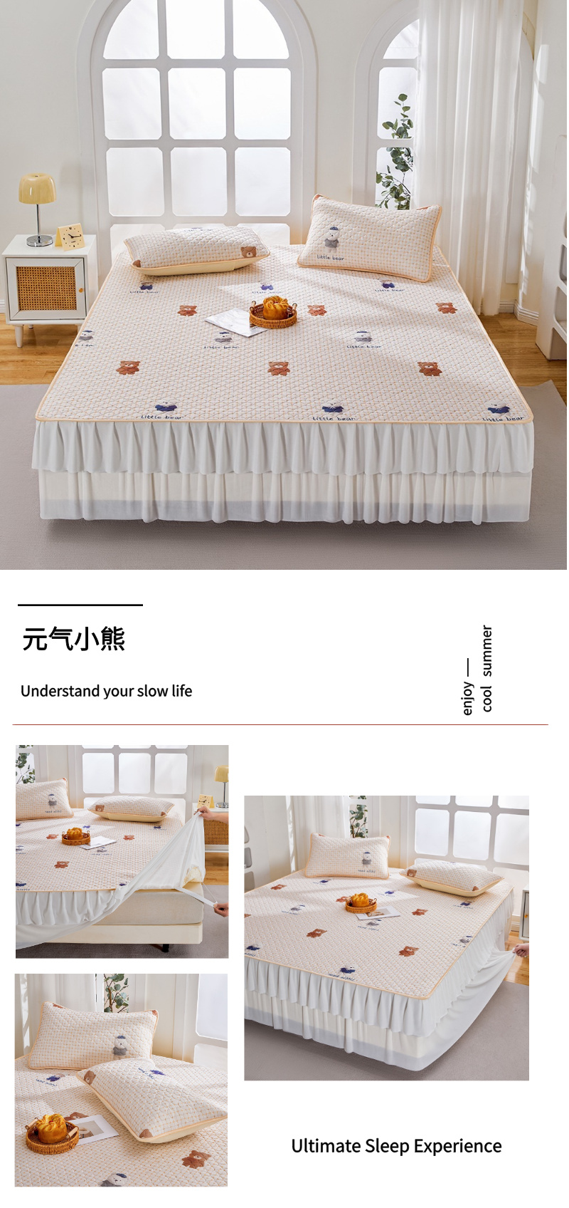 (总)羽梦家纺 2026新款硅胶床裙款凉席席子,深睡蓝,青空灰,柔云粉,淡蓝色,元气小熊,雾岛听花,雾粉花眠,雾里看花,云间花境