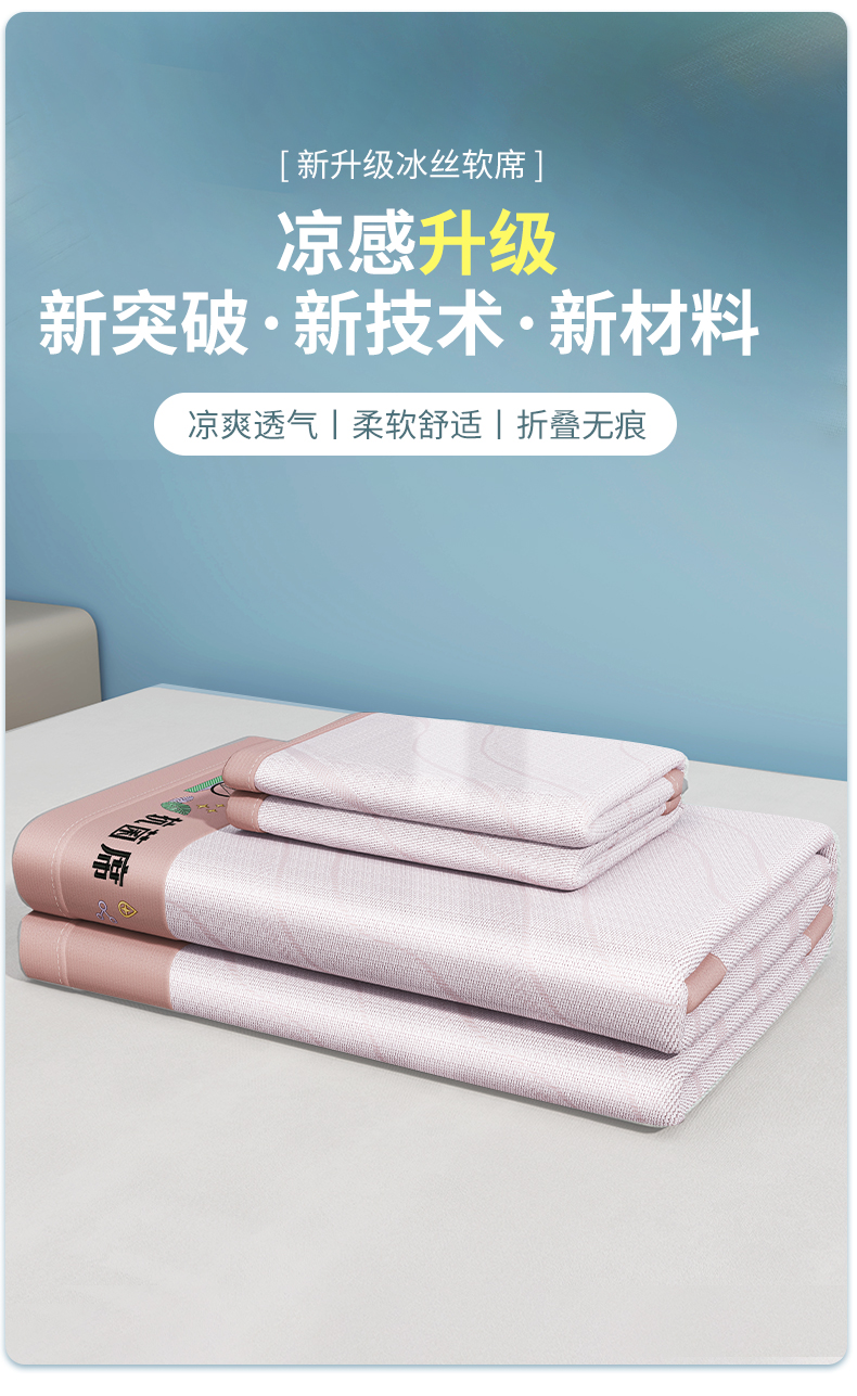 当前位置: 91家纺网 > 商品网购 > 床上用品 > 凉席 > 冰丝席 > yyds网供 2026新款艾草抗菌冰丝凉席碳光席冰丝席床笠水洗折叠空调软席子三件套学生宿舍 床席款-艾草抗菌冰丝-粉