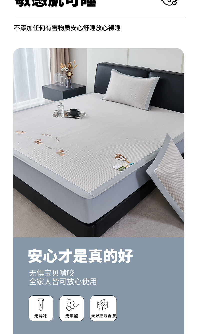(总)小牛席业 2026新款腊肠狗绣花凉感冰丝席凉席席子-(床笠款)凉席藤席冰藤席冰丝席竹席乳胶席