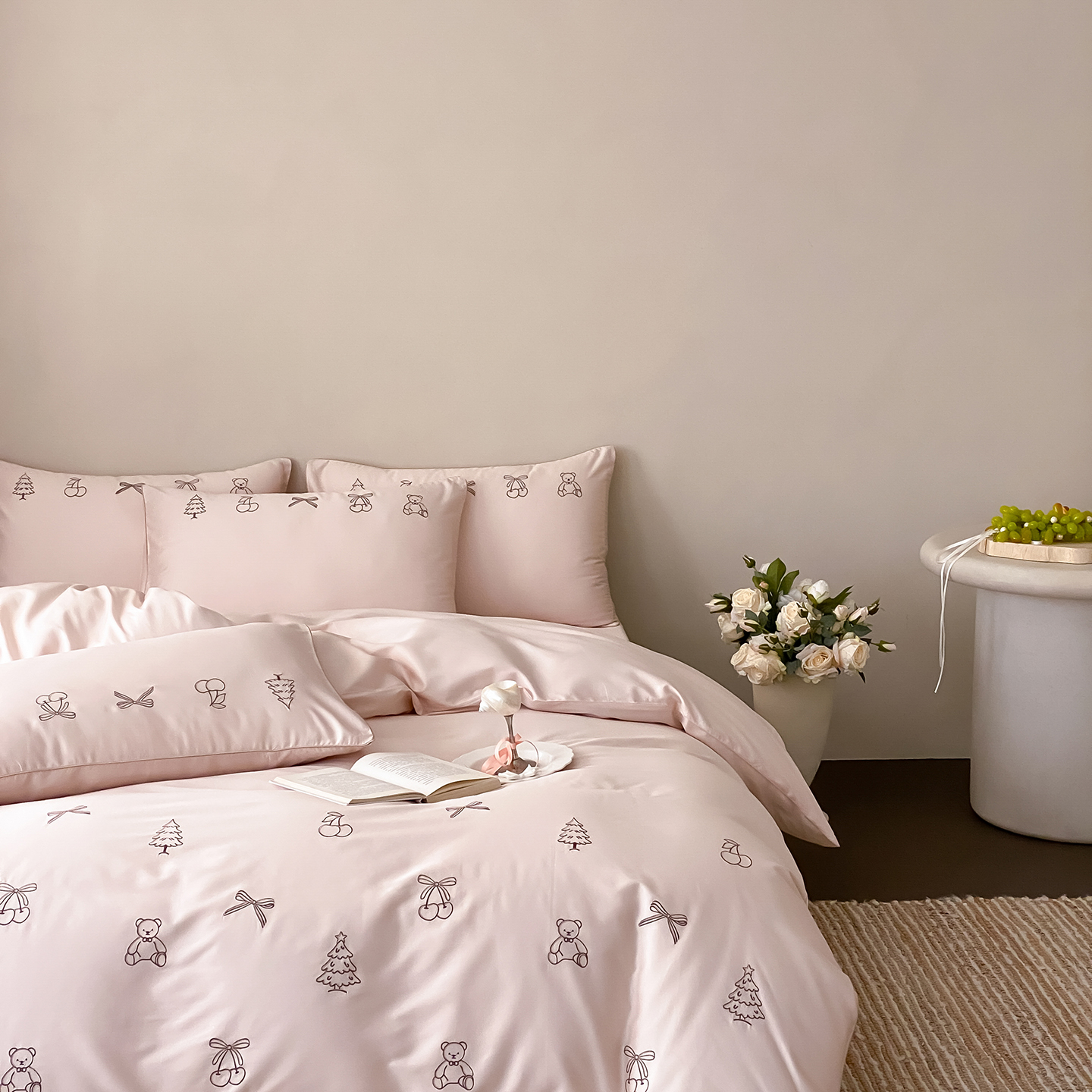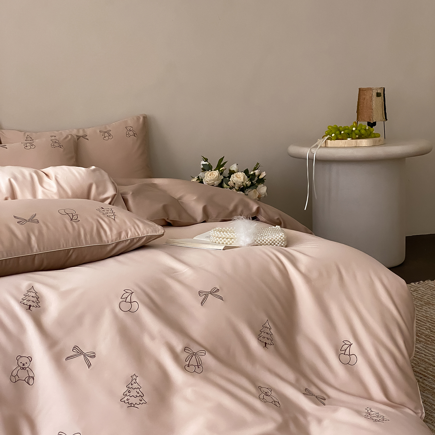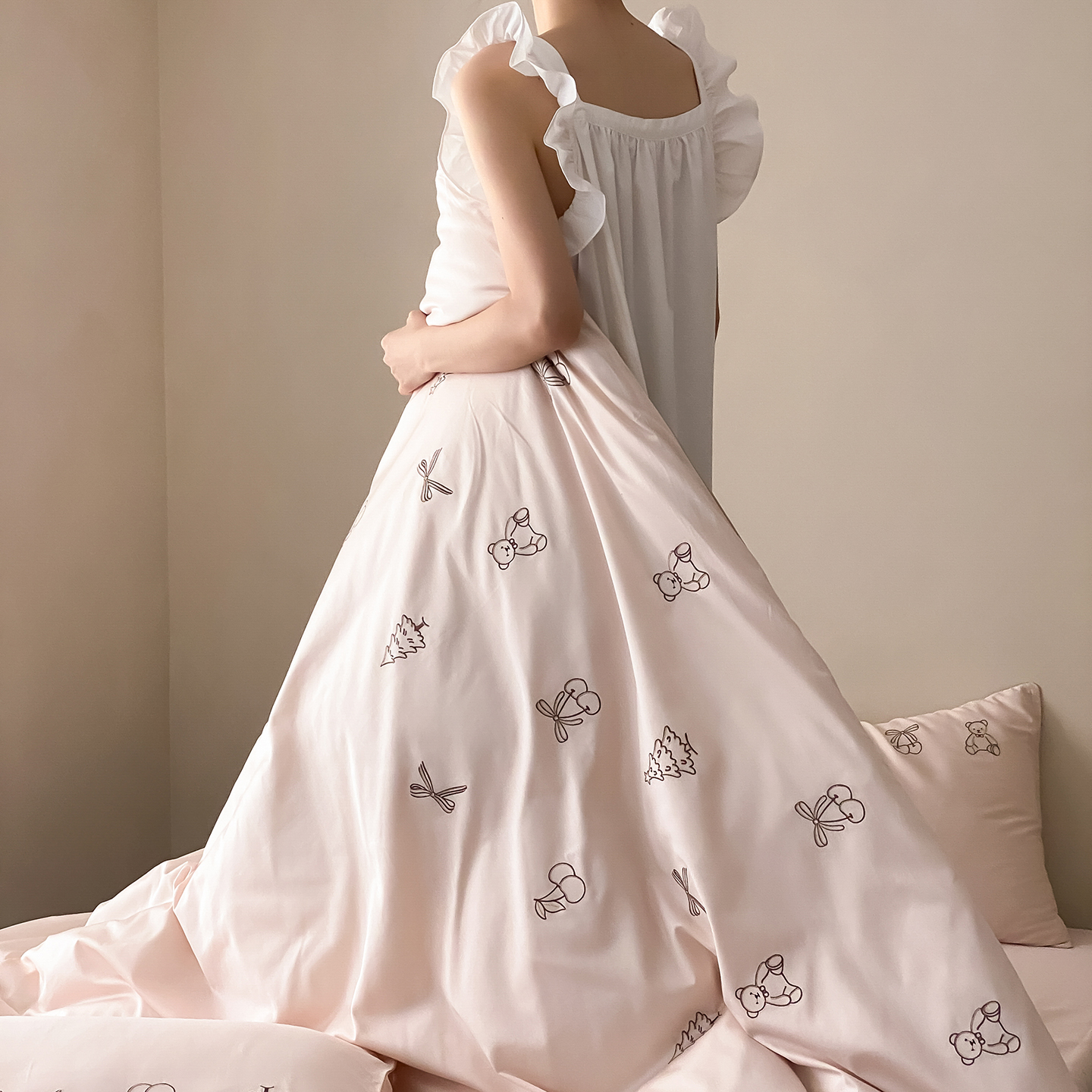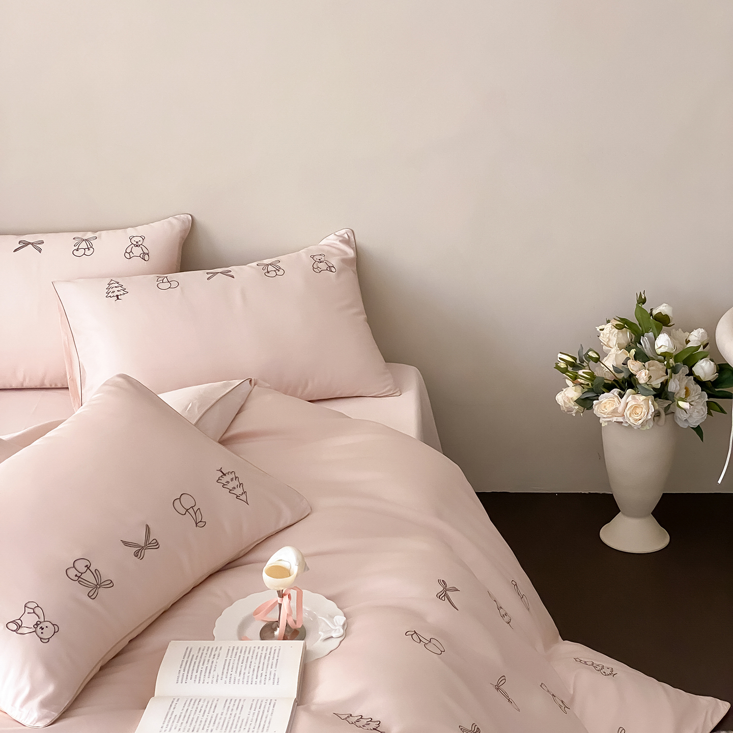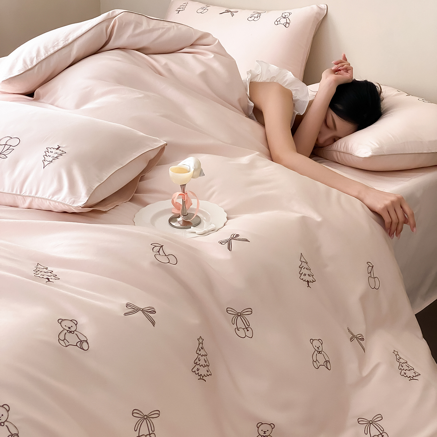 (总)曼布缇 2026新款A类双层纱全棉纯棉工艺款四件套-萌贝尔,萌贝尔-粉,萌贝尔-蓝