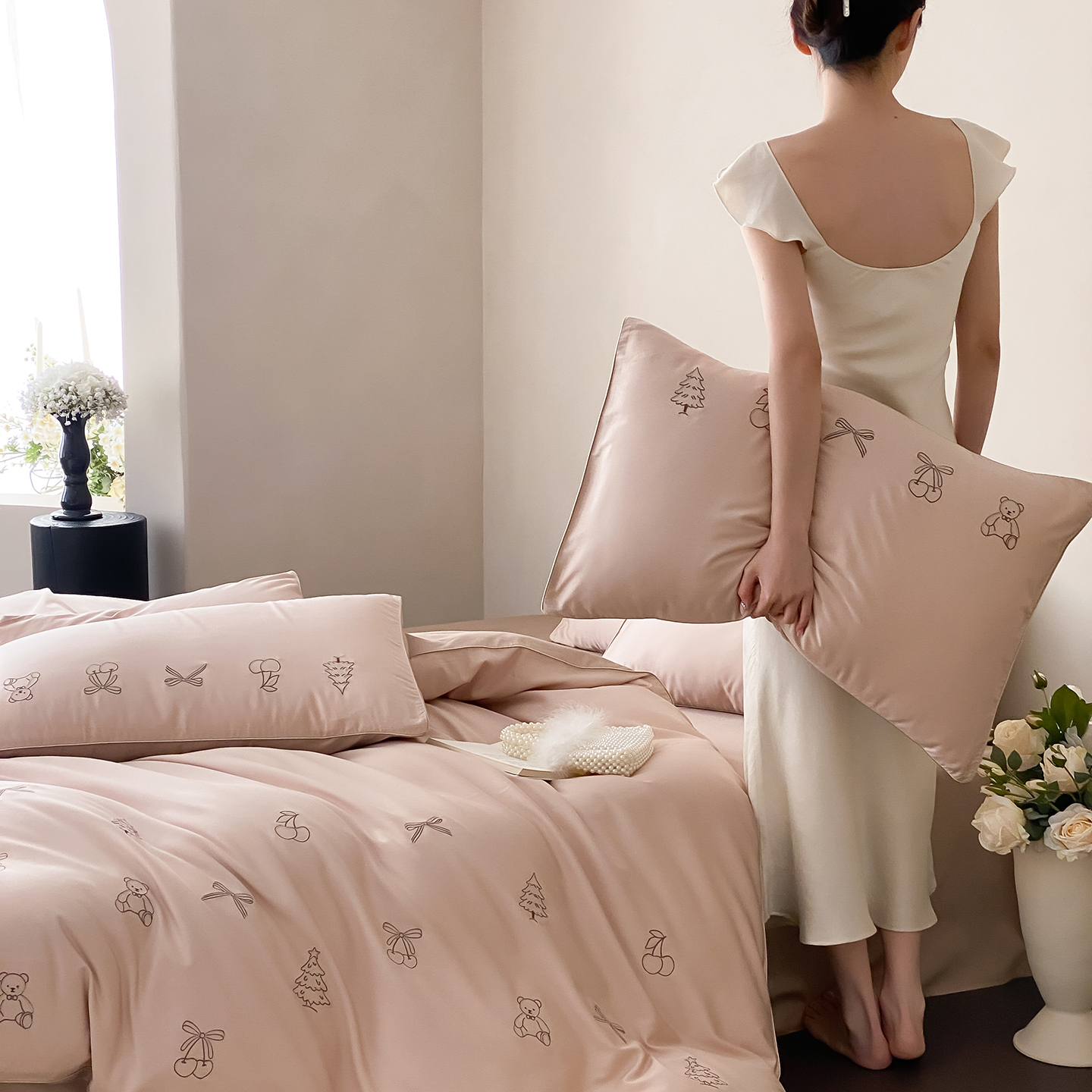 (总)曼布缇 2025新款长绒棉纯棉贴布绣四件套-逐梦(送抱枕)(会员减20,券后338/368/388起),逐梦-场景一,逐梦-场景二