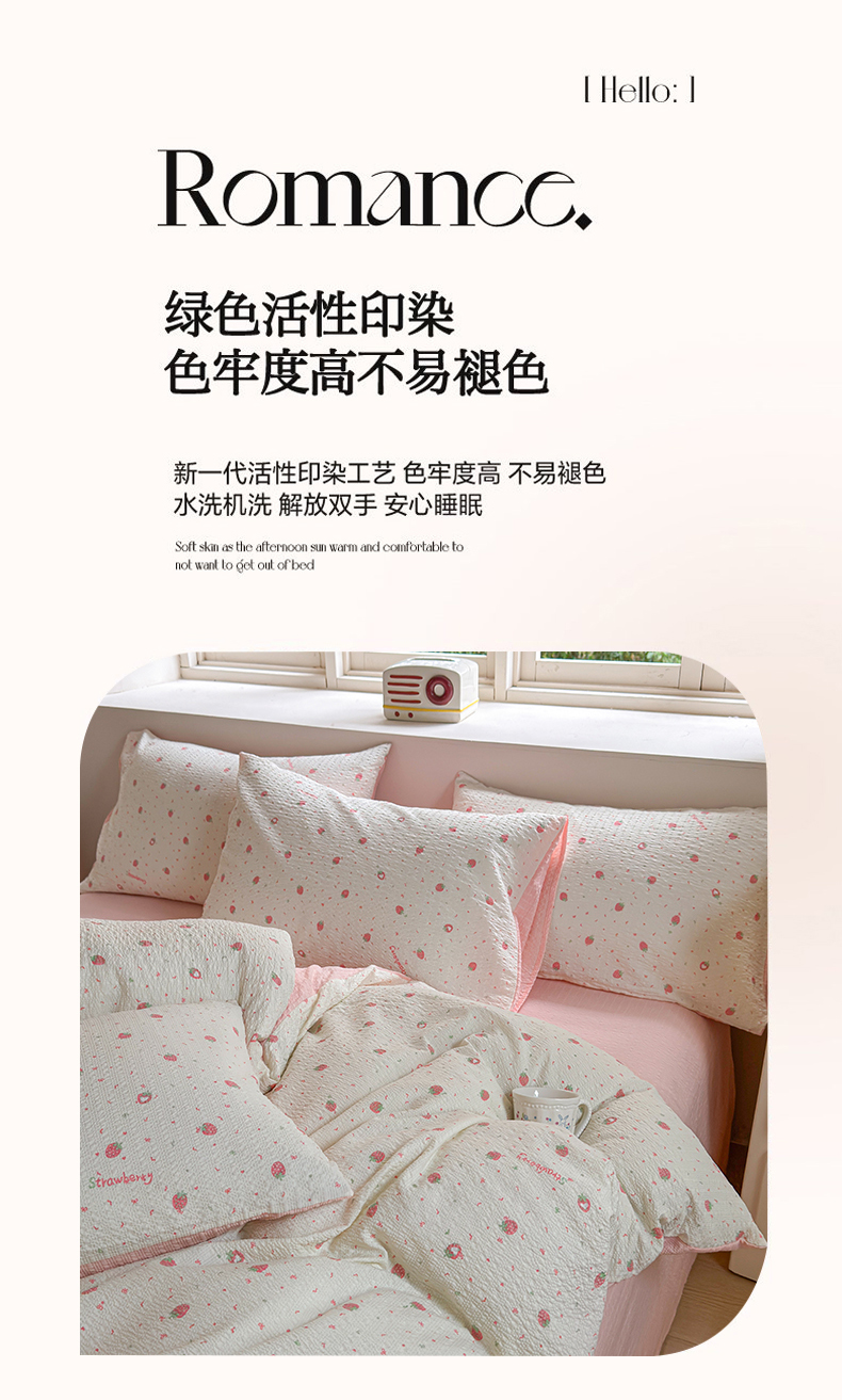 当前位置: 91家纺网 > 商品网购 > 床品套件 > 四件套 > 其它四件套 > 桔禾家纺 2026春夏新款小清新A类超柔泡芙棉泡泡纱双层纱四件套 美莓果