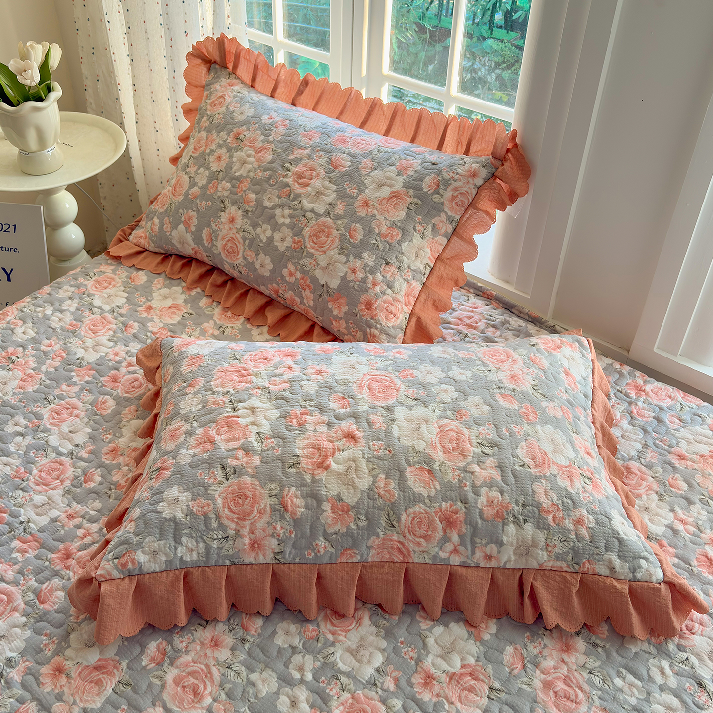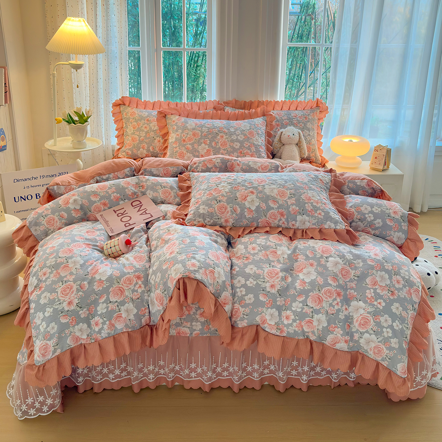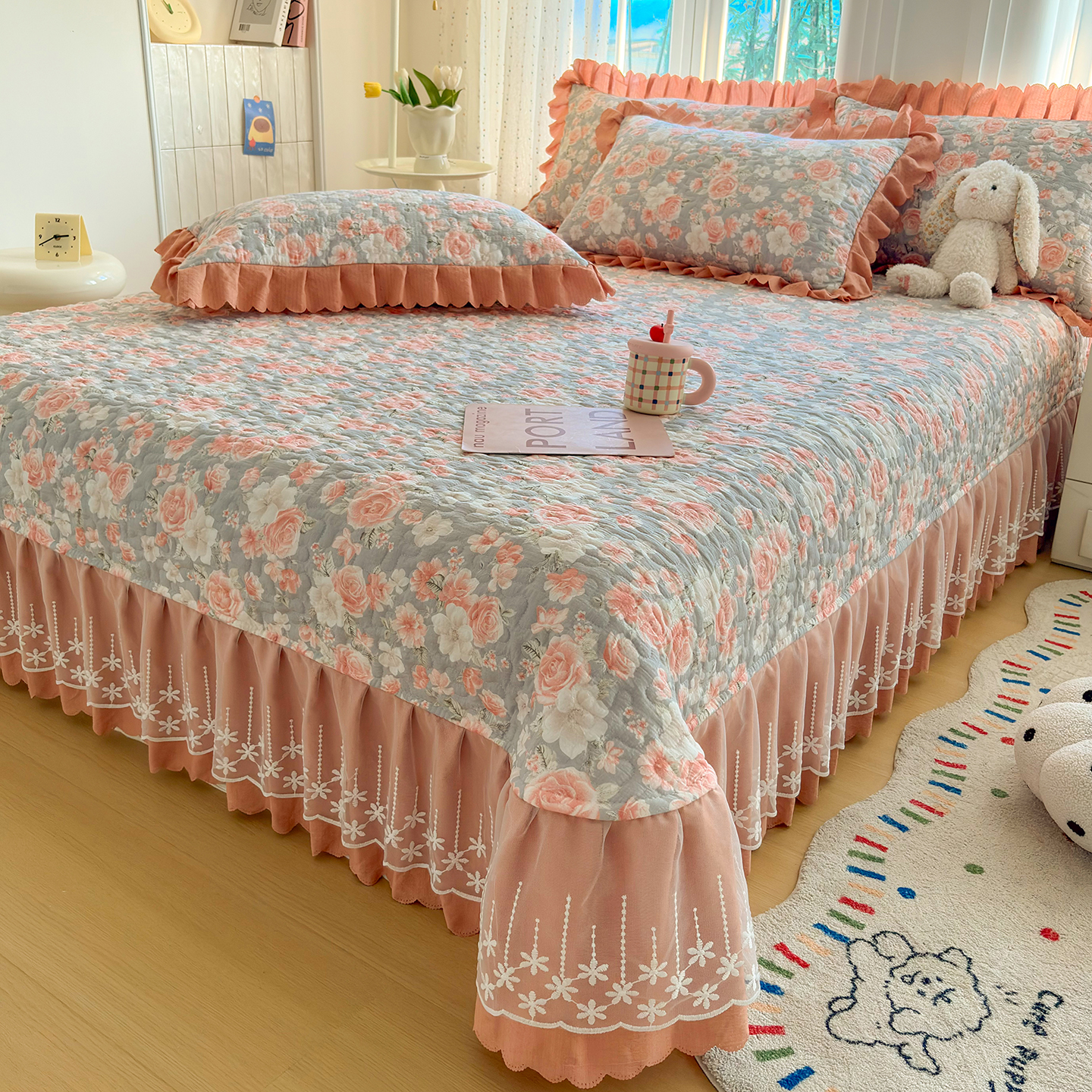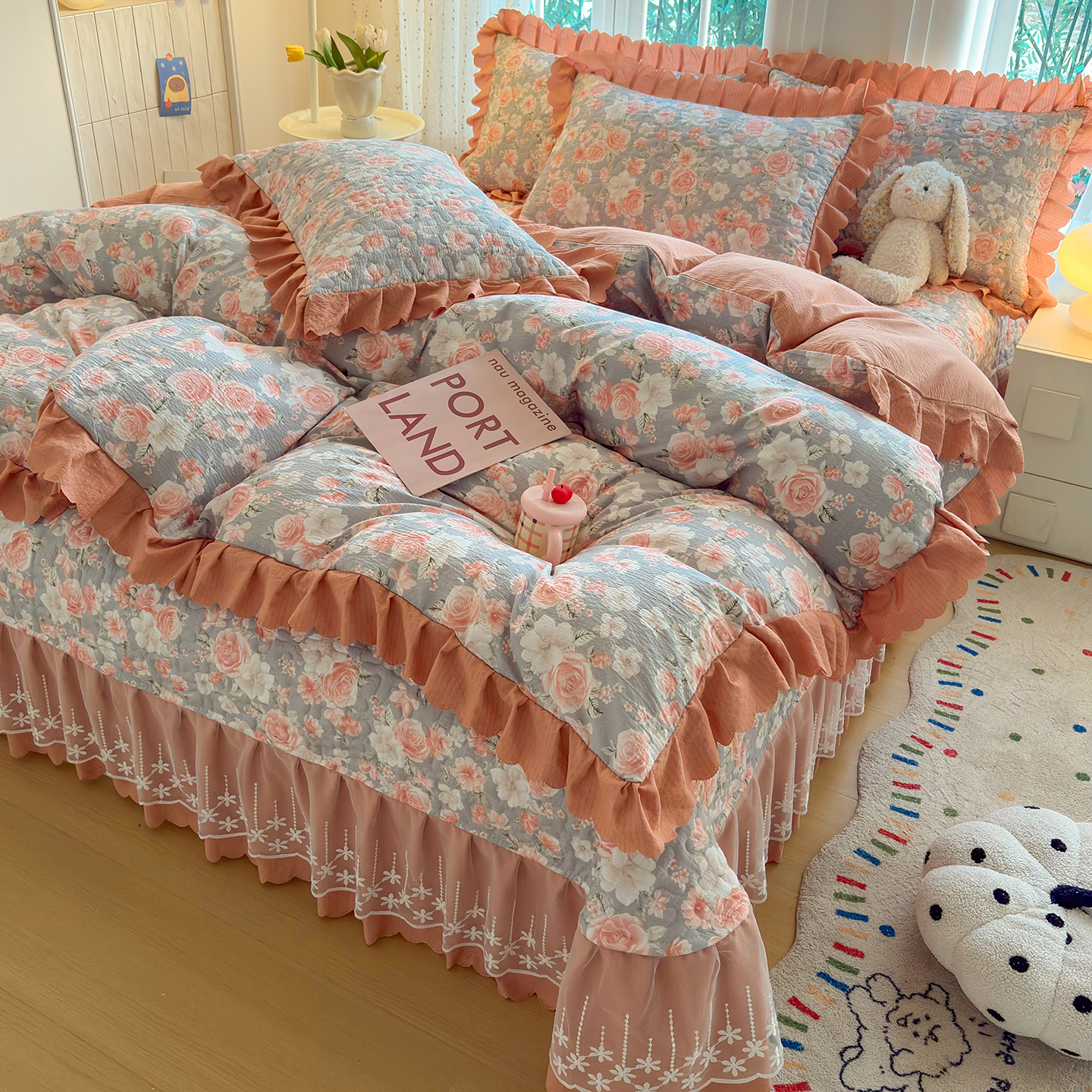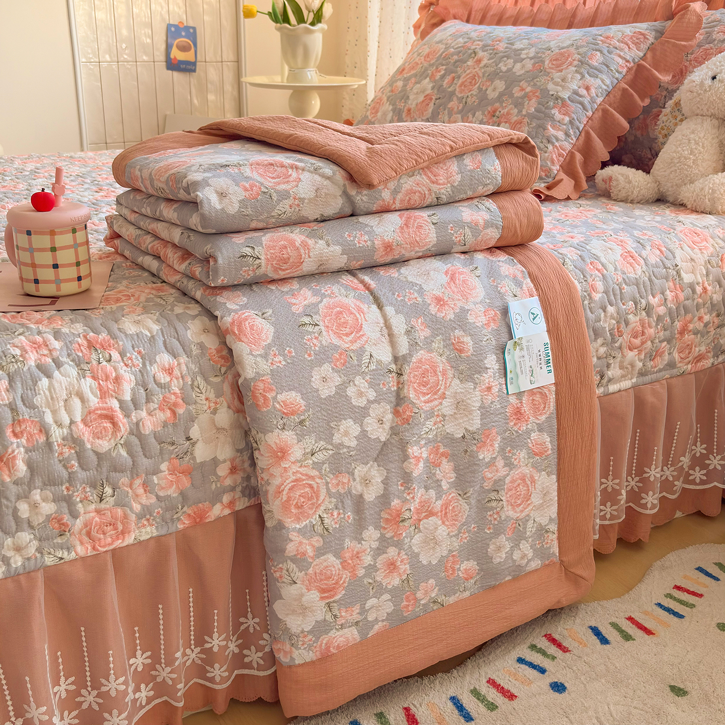 当前位置: 91家纺网 > 商品网购 > 床品套件 > 四件套 > 夏被四件套 > 绒耀家纺 2026春夏直播爆款泡芙棉云感双层纱皱皱纱韩式花边夏被四件套 莫奈花园