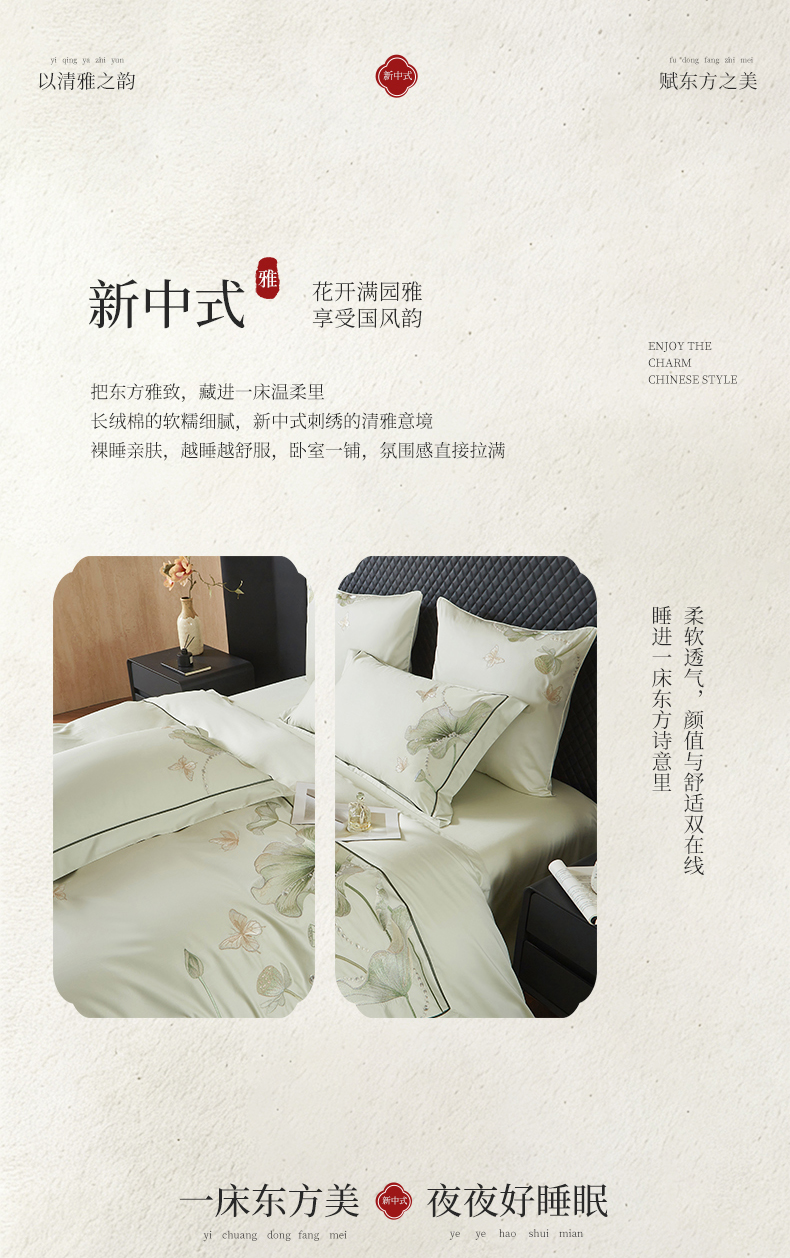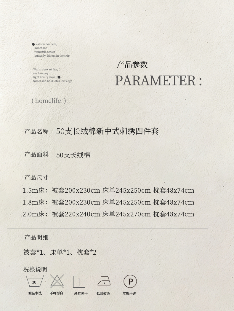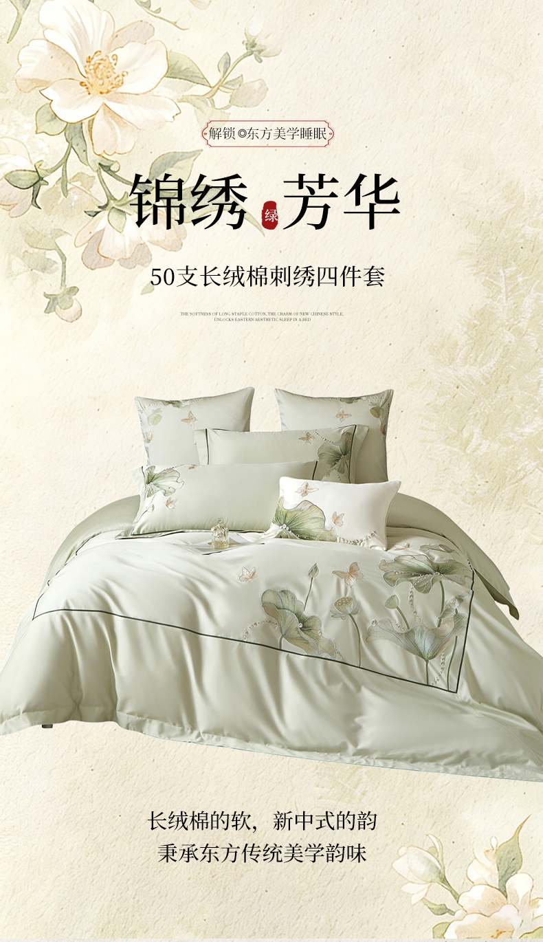 (总)50S50支澳棉刺绣长绒棉四件套全棉新中式花卉直播爆款线下批发,古香风韵,山花浪漫