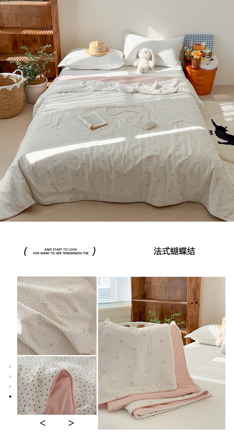 商品名称:大彩家居 2026新款全棉双层纱凉感夏被 法式蝴蝶结
