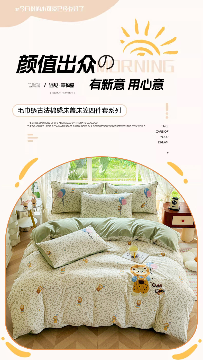 当前位置: 91家纺网 > 商品网购 > 床品套件 > 四件套 > 化纤普通四件套 > 恋佳居 2026新款毛巾绣古法棉床笠床盖四件套 花狮轻梦