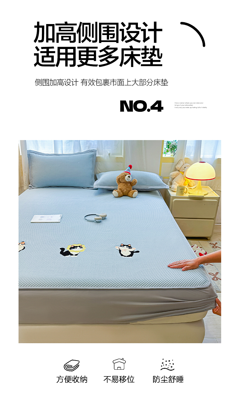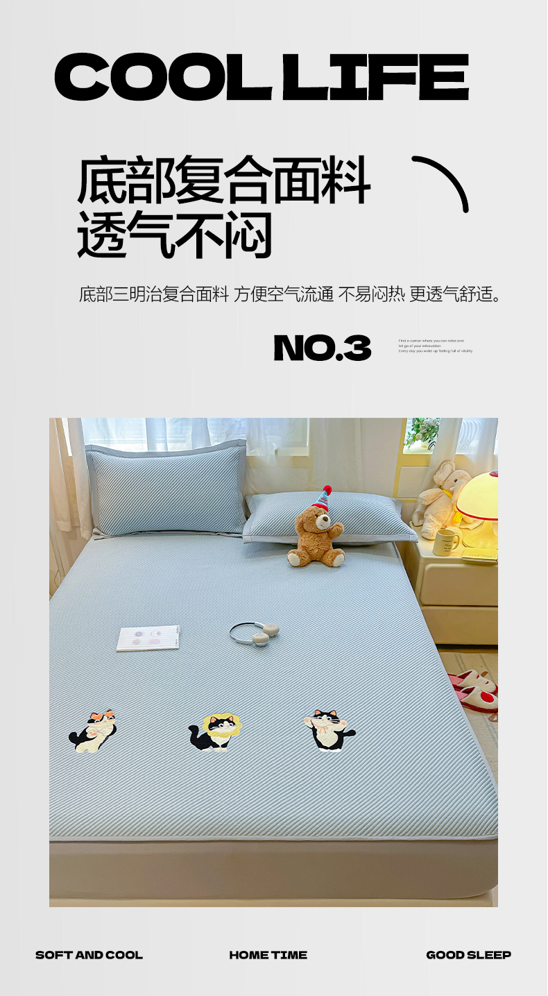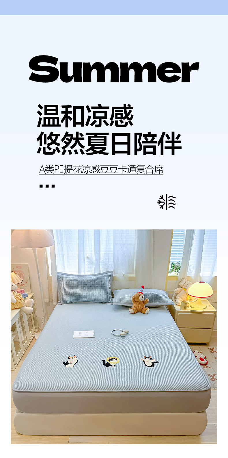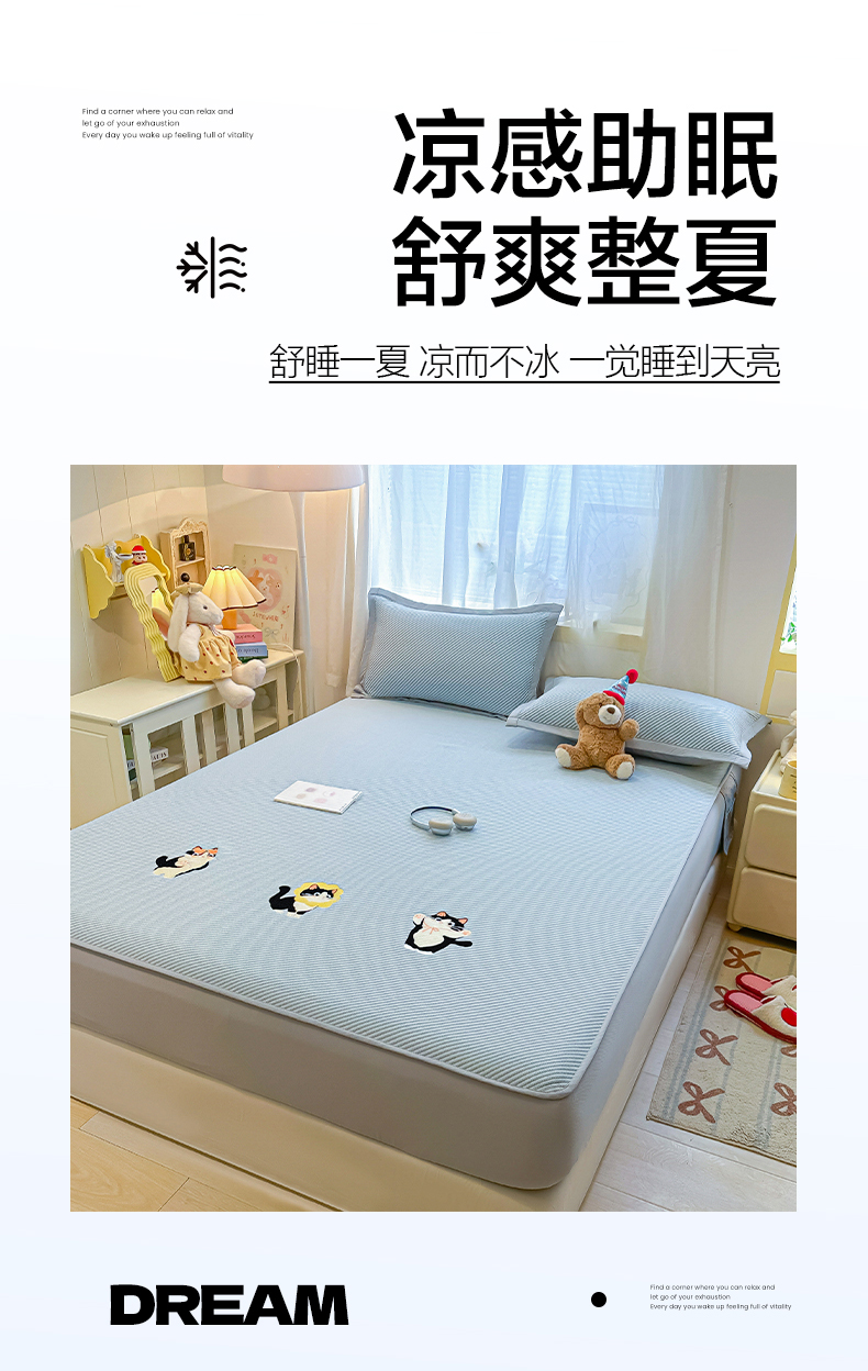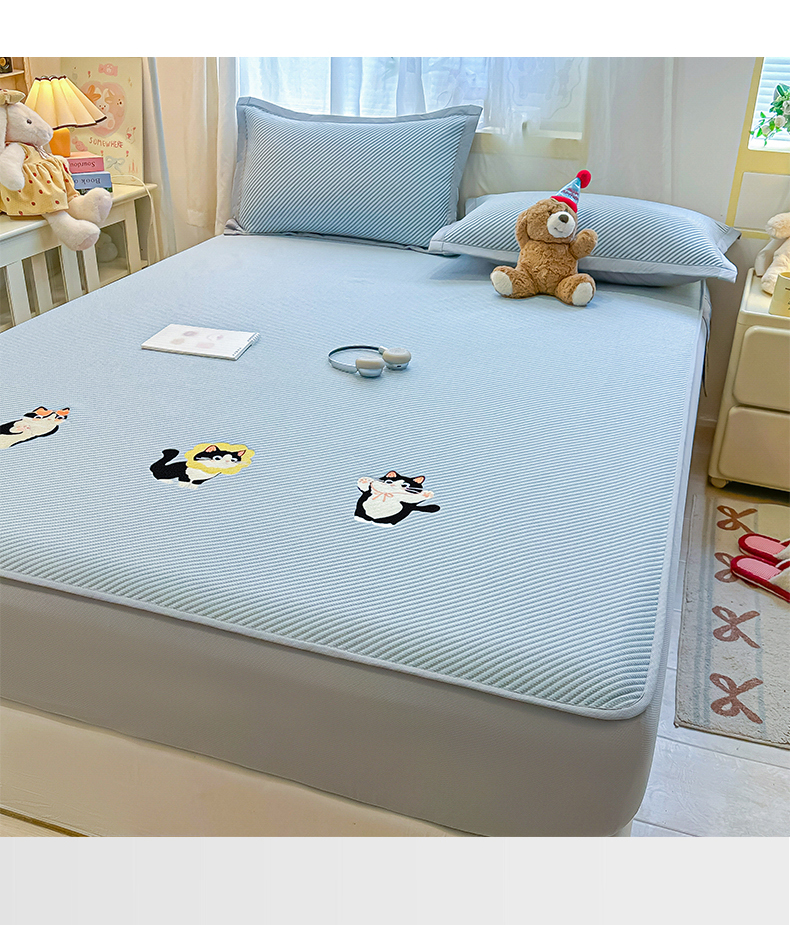 商品名称:(总)多乐家纺 2026新款PE提花斜纹凉感豆豆卡通刺绣大包边复合凉席