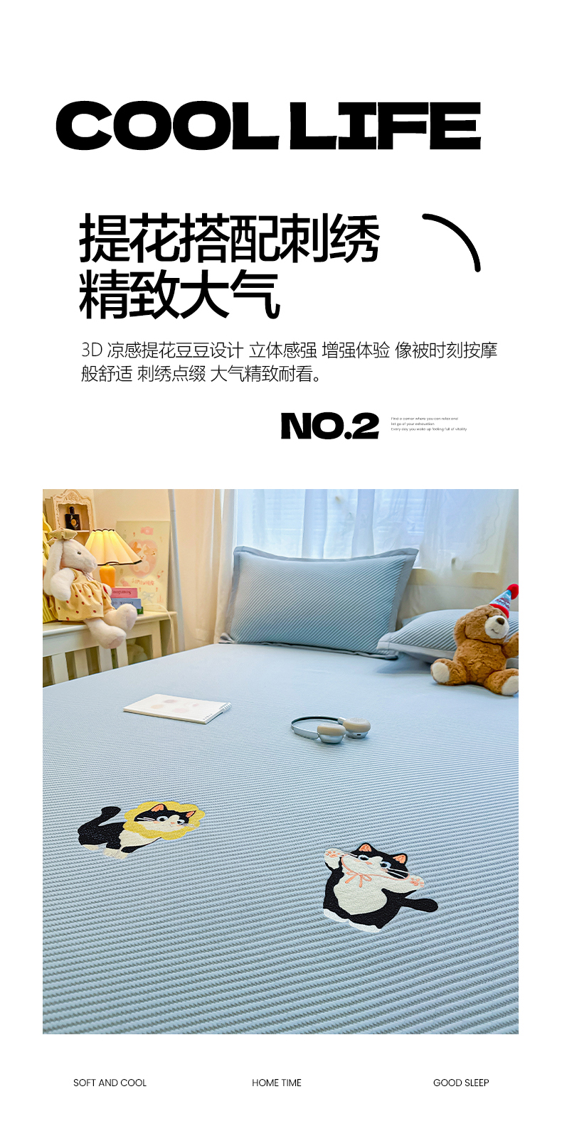 (总)多乐家纺 2026新款PE提花斜纹凉感豆豆卡通刺绣大包边复合凉席