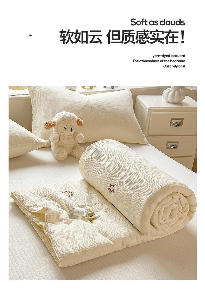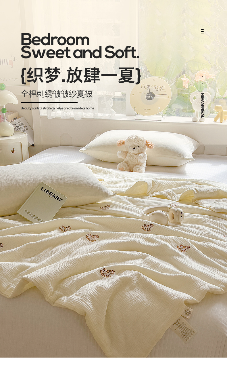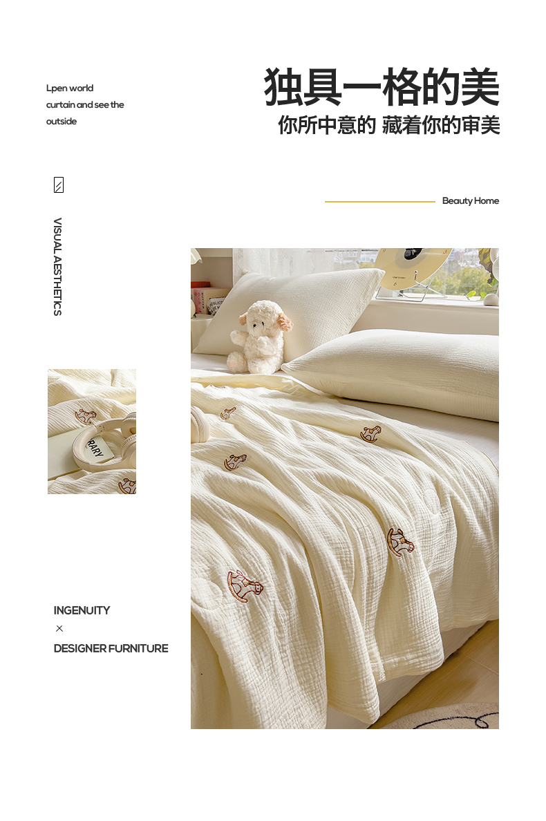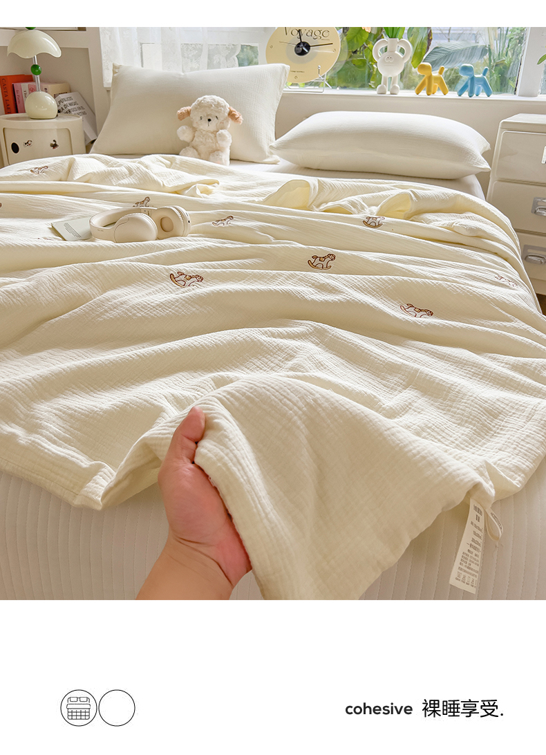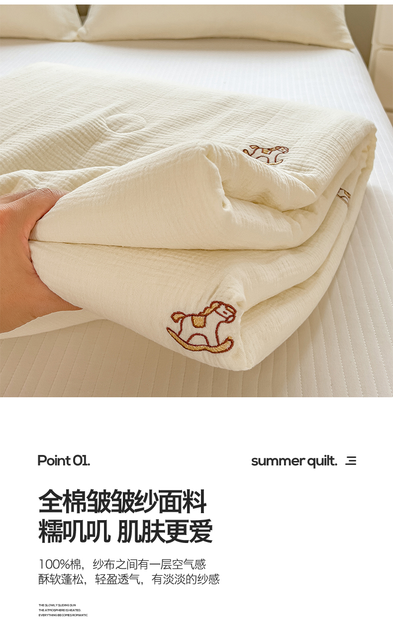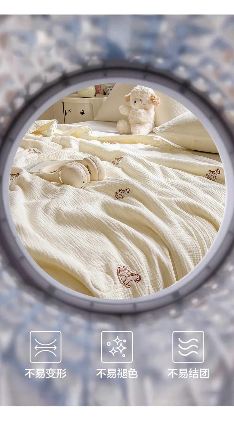商品名称:布凡家居 2026春夏新款全棉刺绣皱皱纱夏被夏凉被空调被 云间木马梦