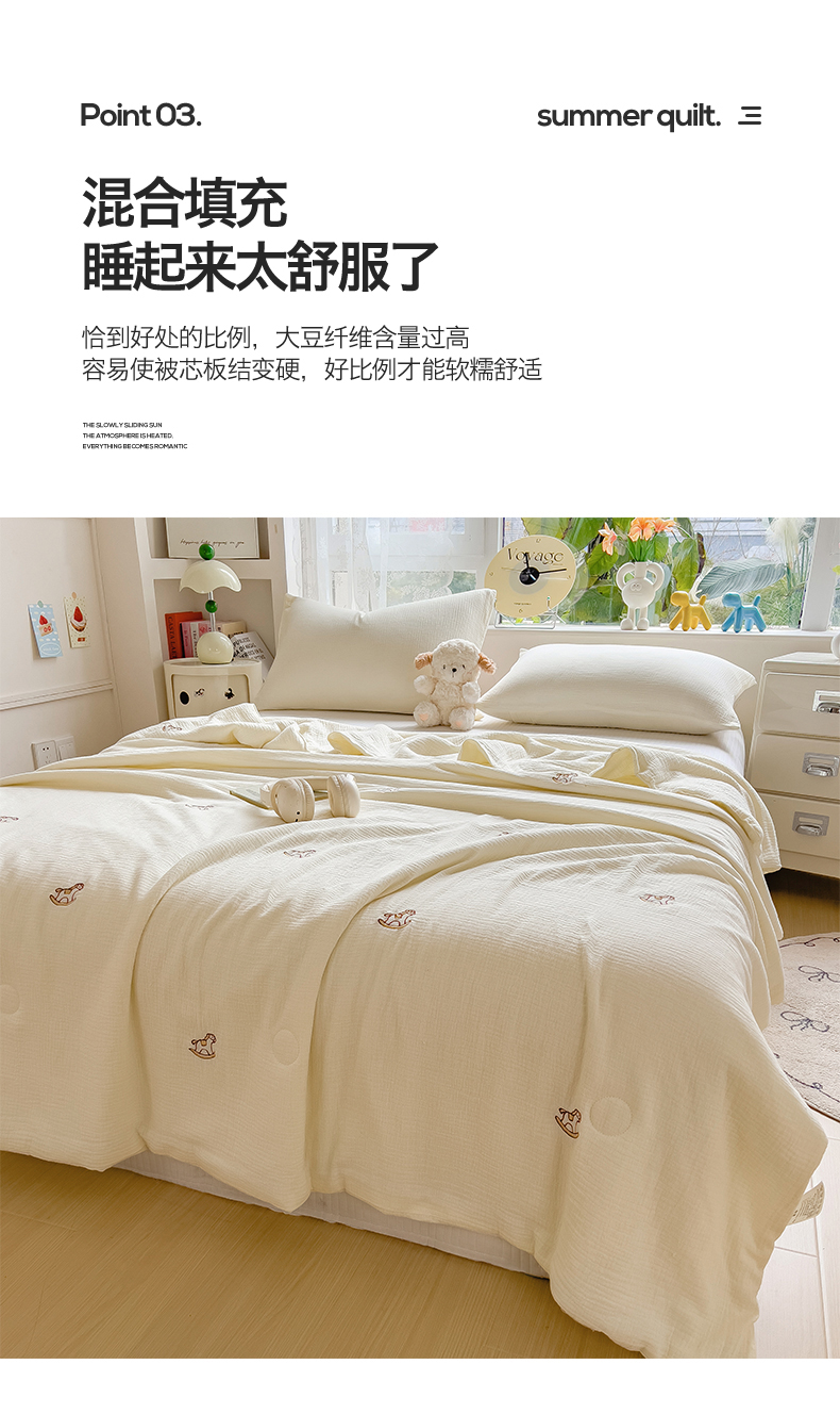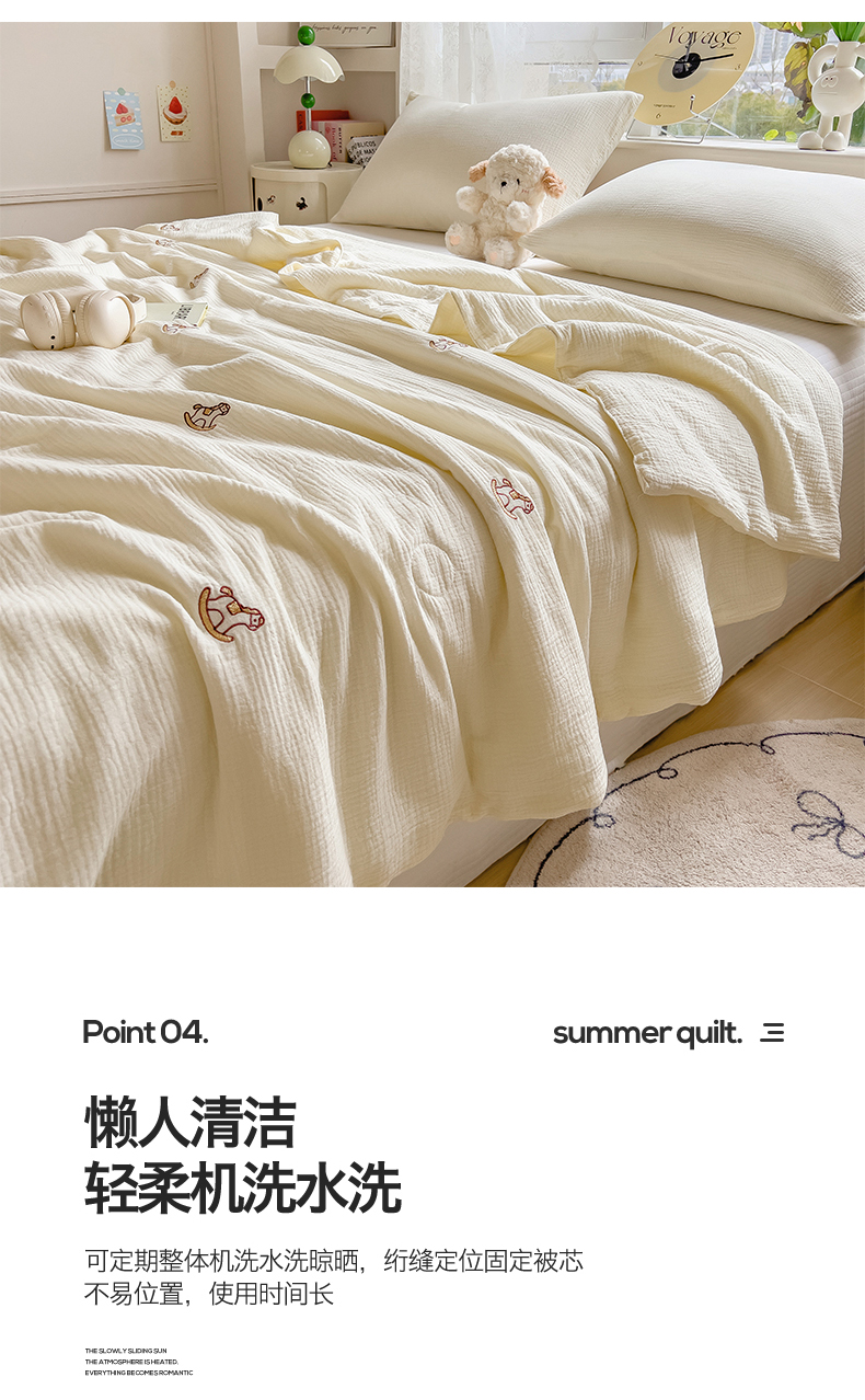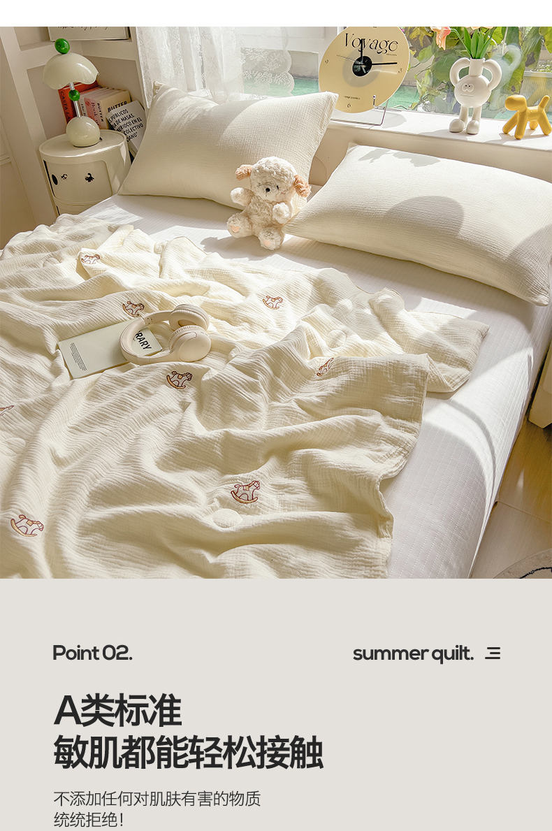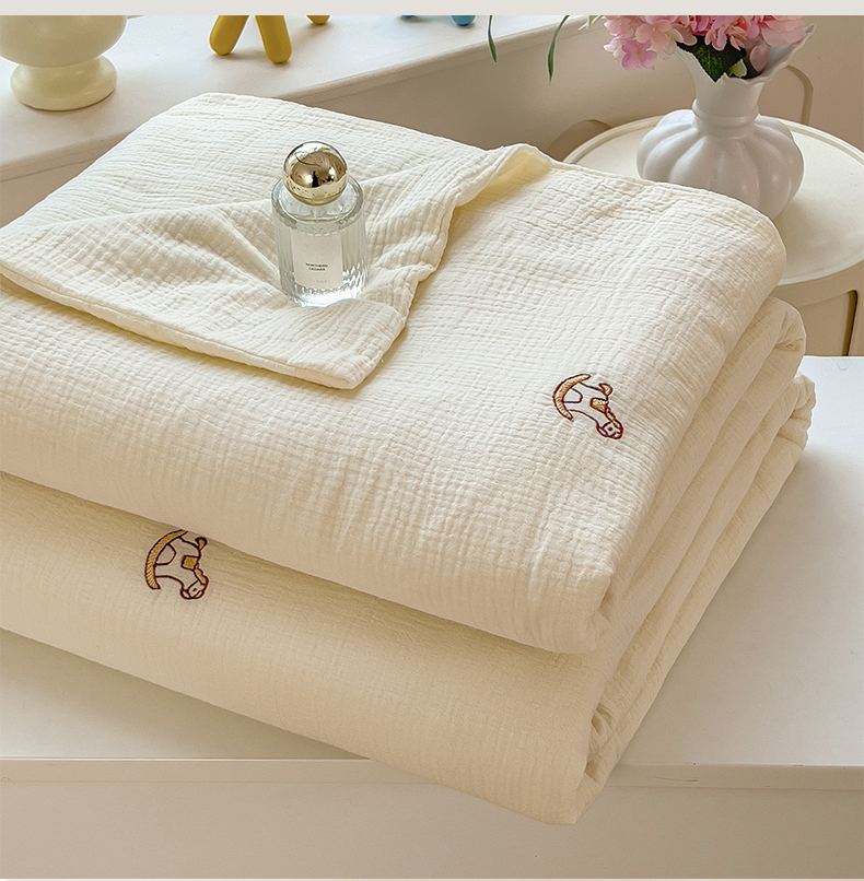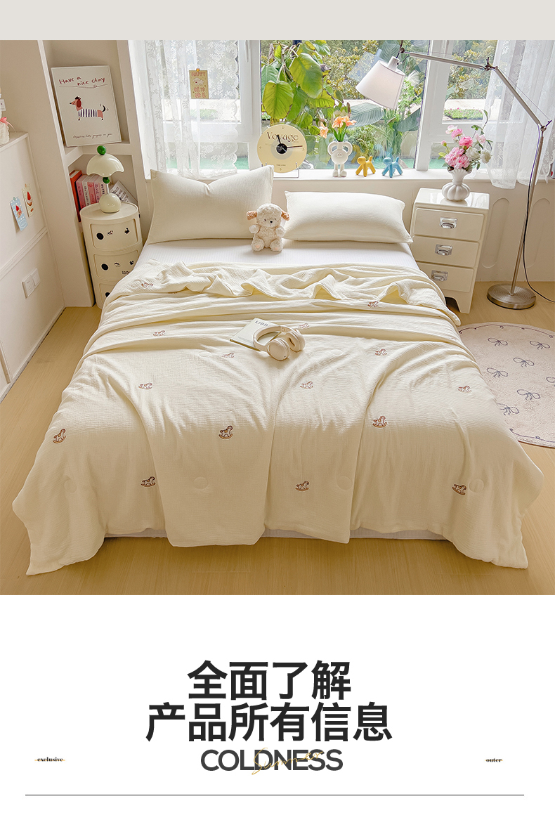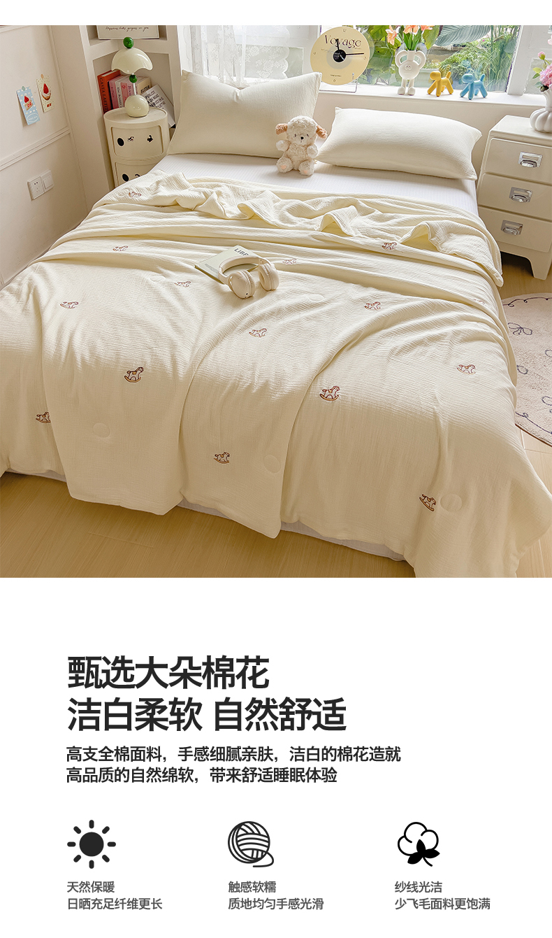 商品名称:布凡家居 2026春夏新款全棉刺绣皱皱纱夏被夏凉被空调被 云间木马梦