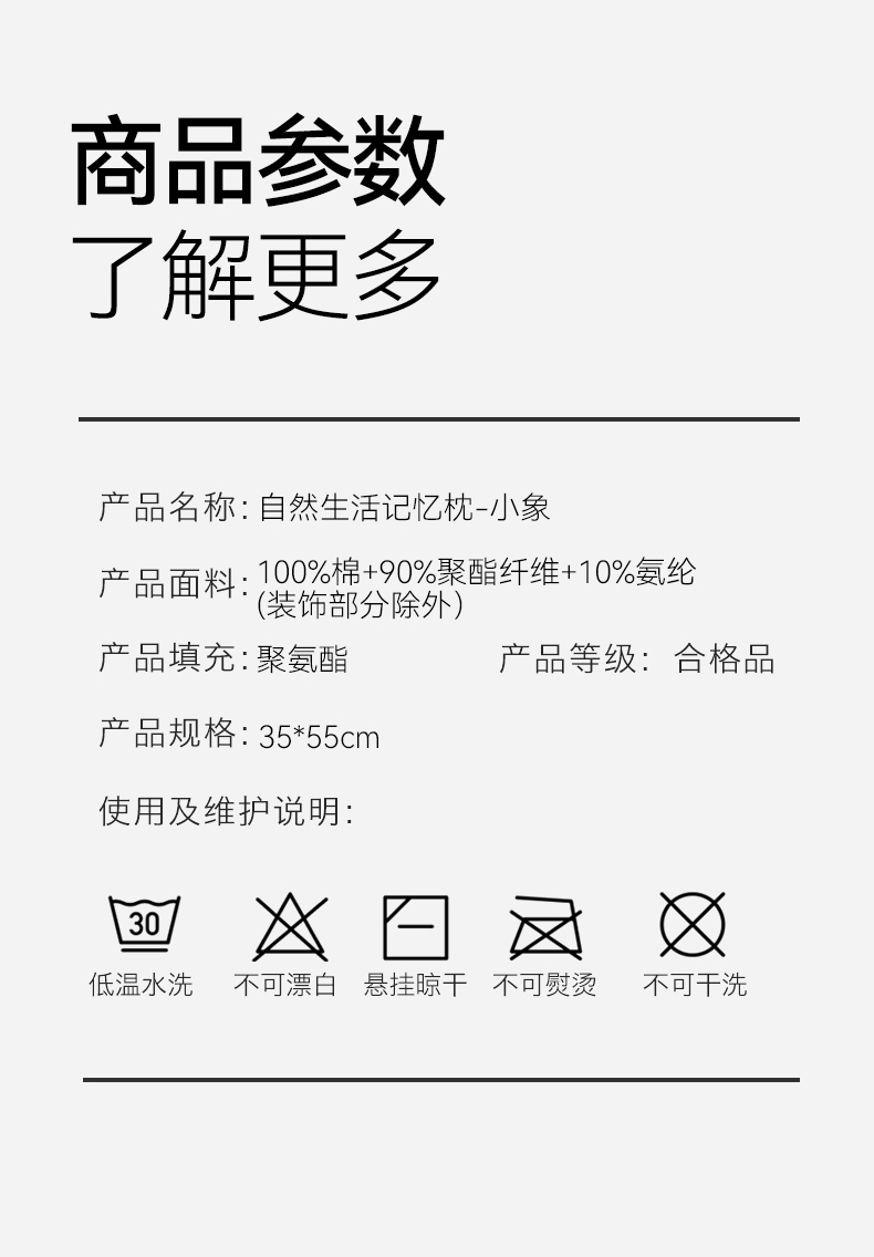 商品名称:麦肯锡 2026新款自然生活记忆枕枕头枕芯-小象 小象-灰色