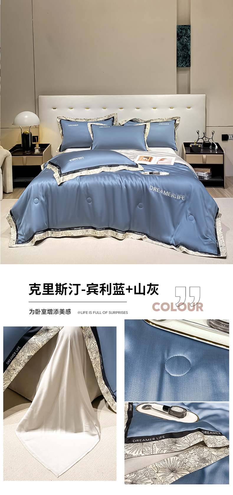 • 91家纺网 家纺一手货源 找家纺 (总)眷恋家纺 2026新款水洗真丝冰丝宽边刺绣夏被三件套四件套-克里斯汀系列,克里斯汀-宾利蓝+山灰,克里斯汀-高级灰+奶茶,克里斯汀-海清+山灰,克里斯汀-奶昔白+奶茶,克里斯汀-奶昔白+天空蓝,克里斯汀-浅豆沙+奶茶,克里斯汀-山灰+中灰,克里斯汀-中灰+山灰
