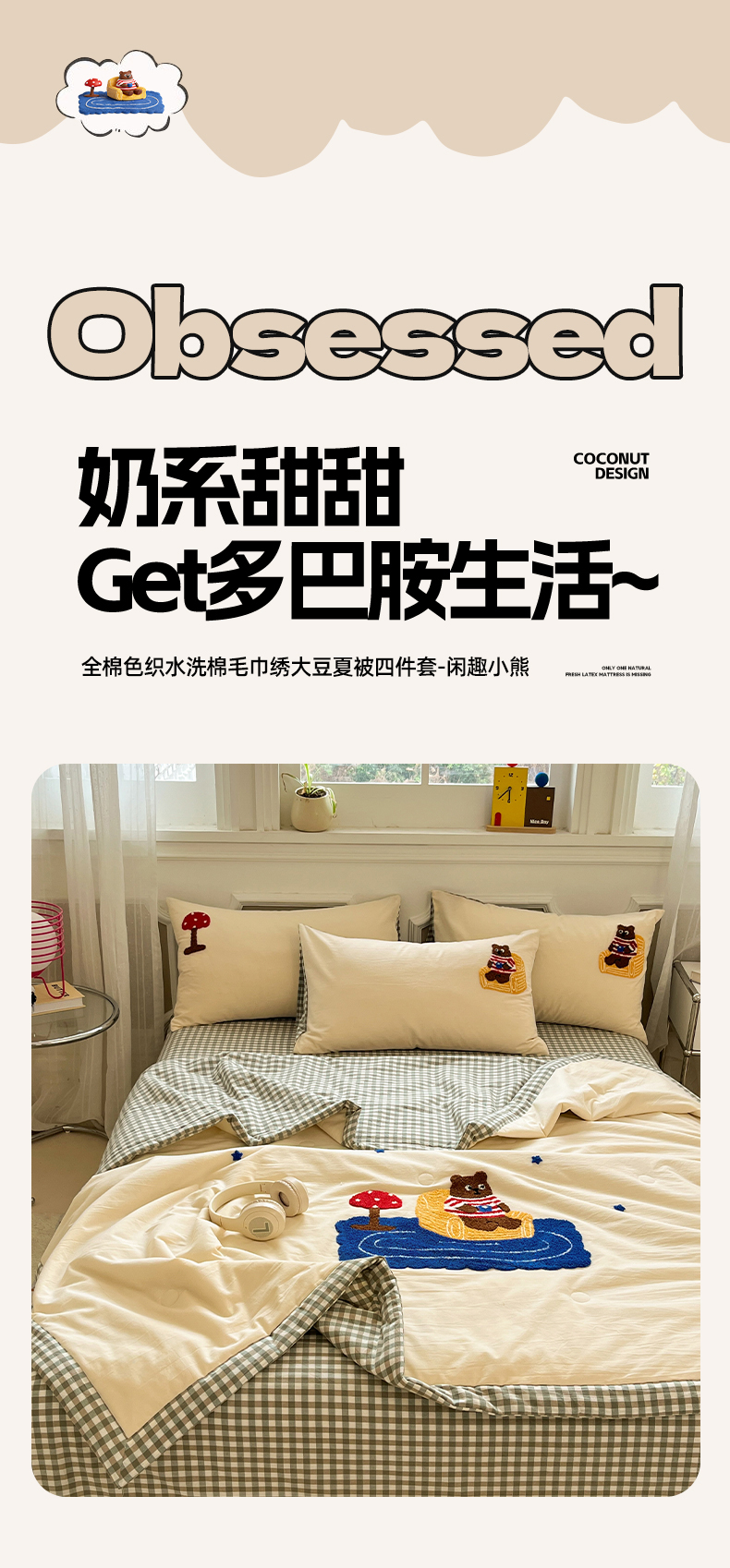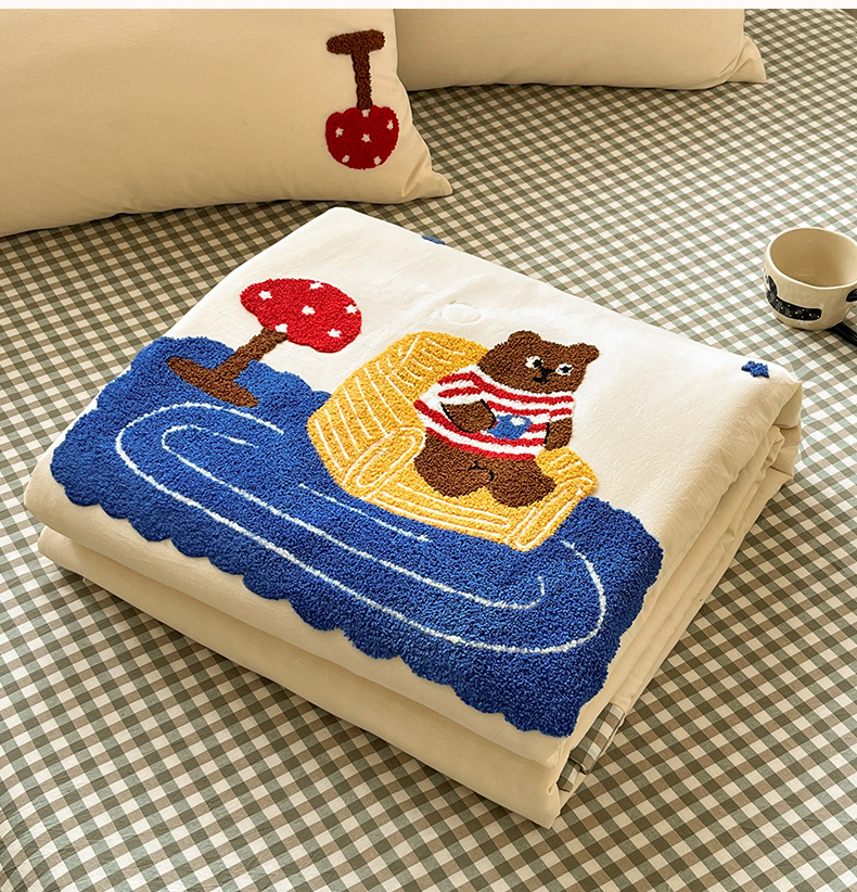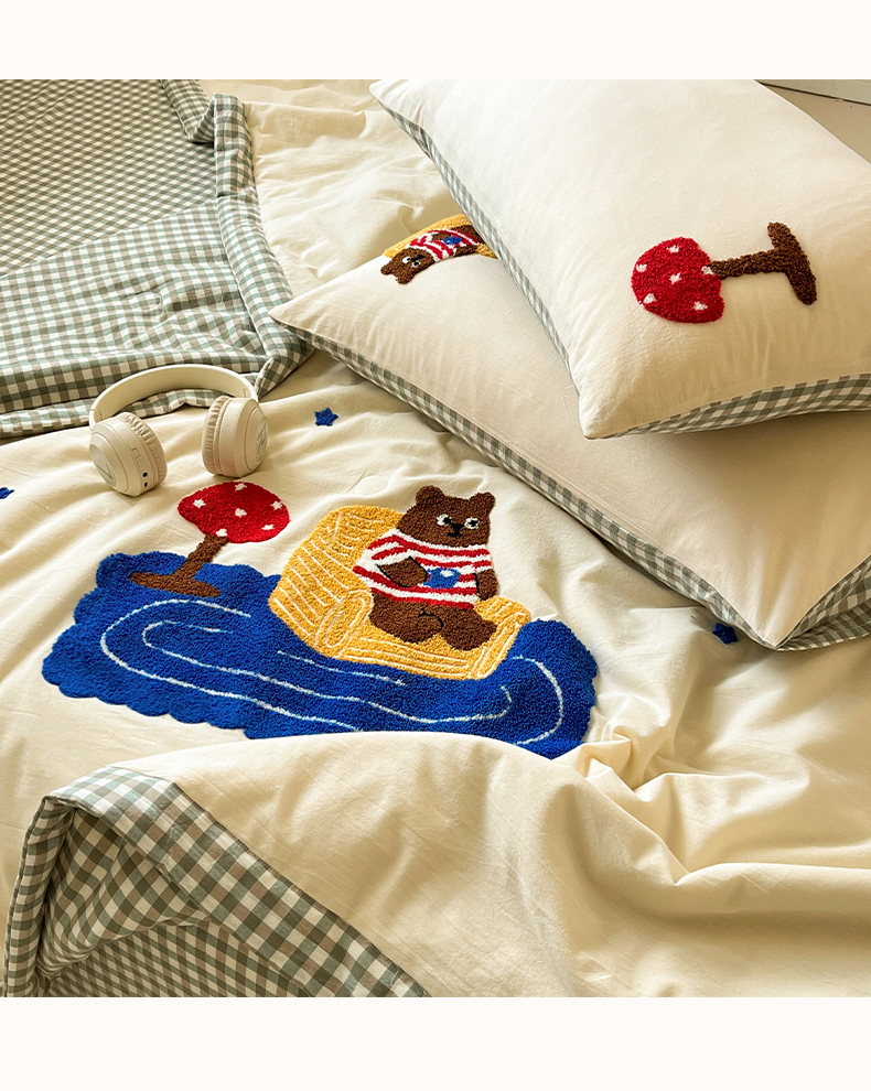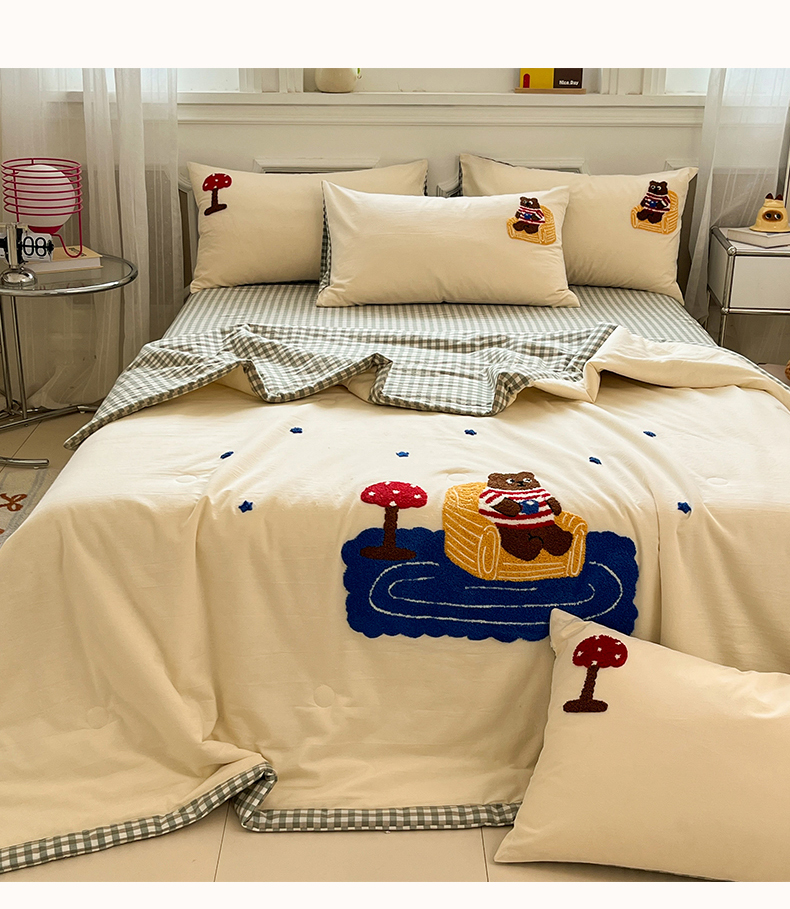 • 91家纺网 家纺一手货源 找家纺 一加一 2026新款全棉色织水洗棉毛巾绣大豆夏被夏凉被空调被四件套-闲趣小熊 闲趣小熊-格小绿