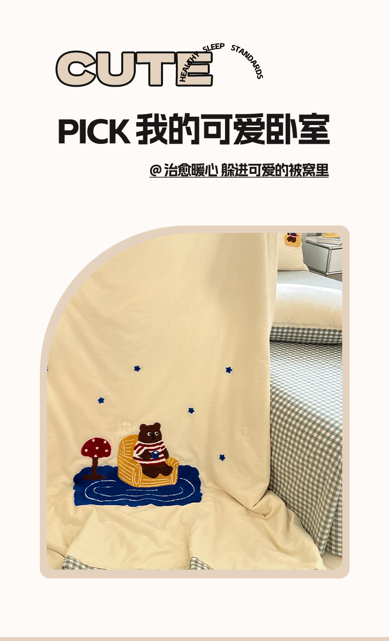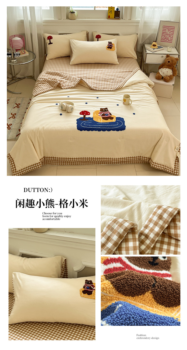 • 91家纺网 家纺一手货源 找家纺 (总)一加一 2026新款全棉色织水洗棉毛巾绣大豆夏被夏凉被空调被四件套-闲趣小熊,闲趣小熊-格小蓝,闲趣小熊-格小绿,闲趣小熊-格小米