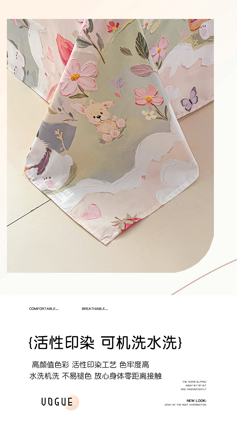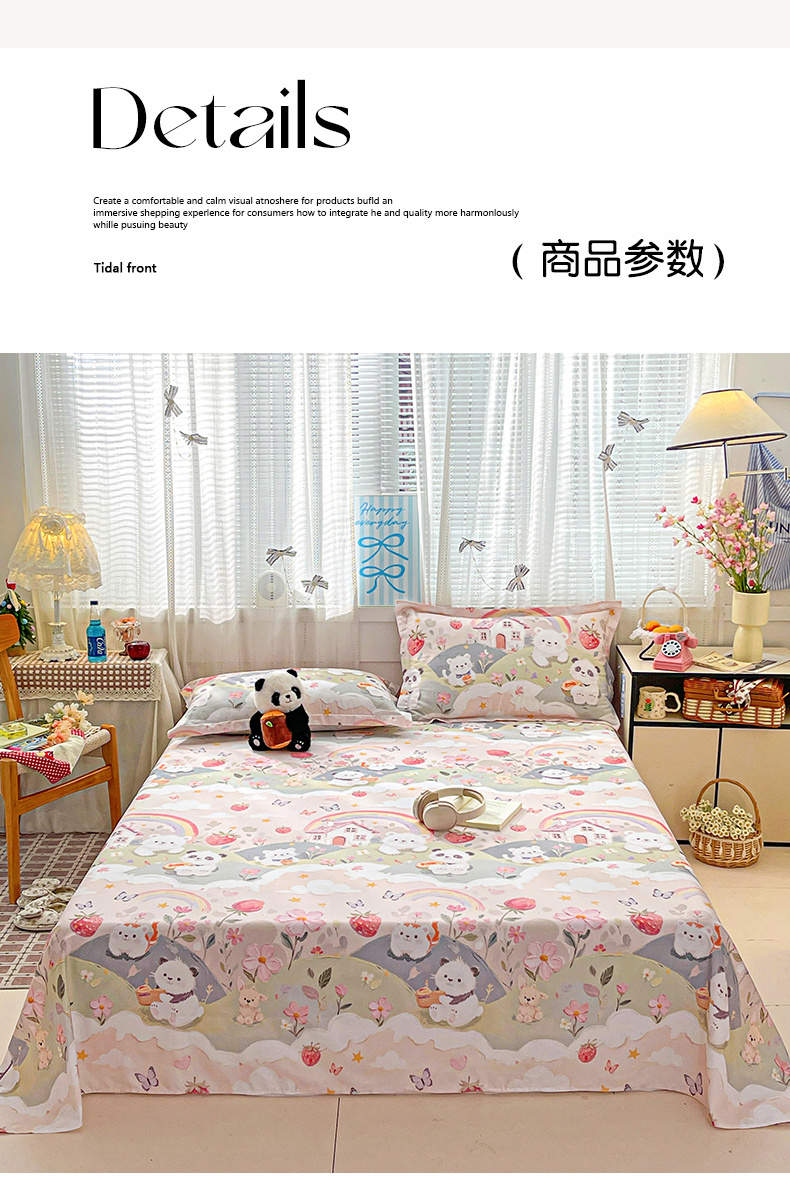 商品名称:大柏树 2026新款全棉纯棉13376印花单床单单品床单床单单件 花间小熊