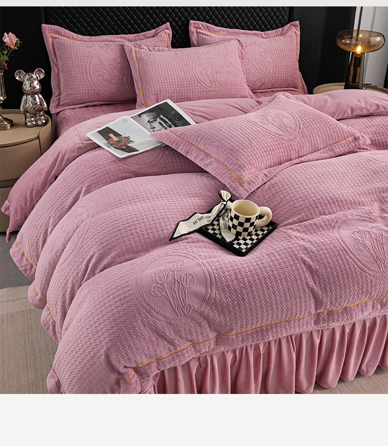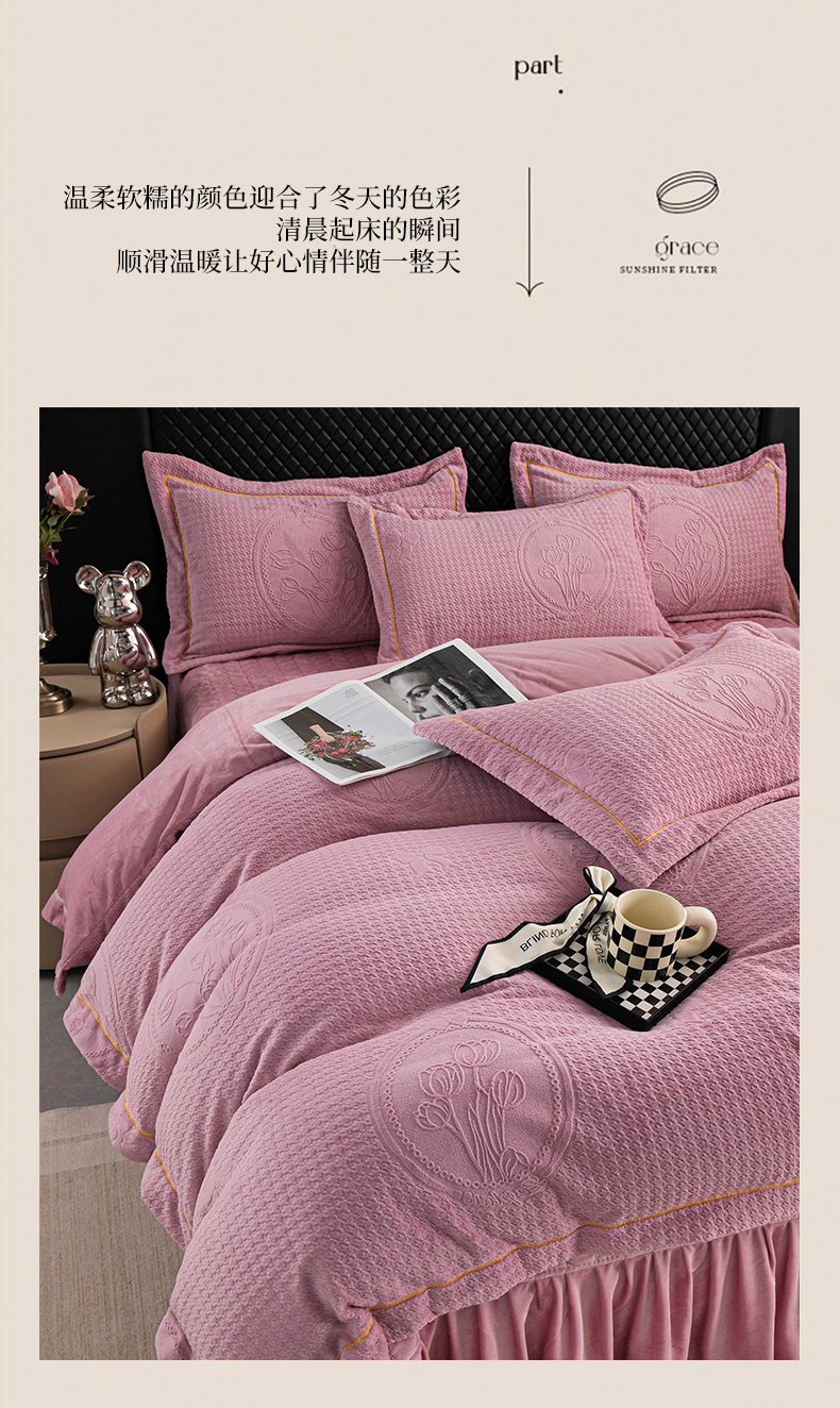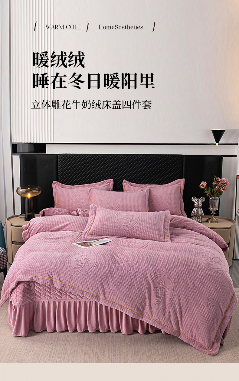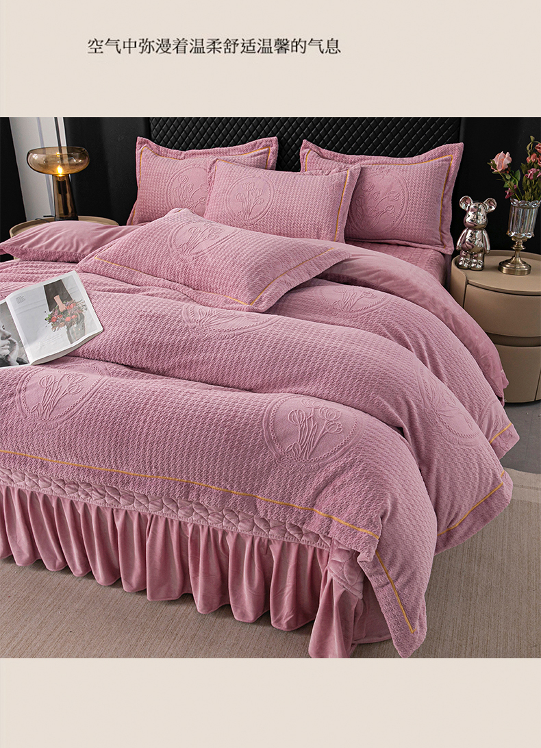 莉迪娅 2026新款立体雕花牛奶绒床盖四件套-轻奢花语 轻奢花语-豆沙
