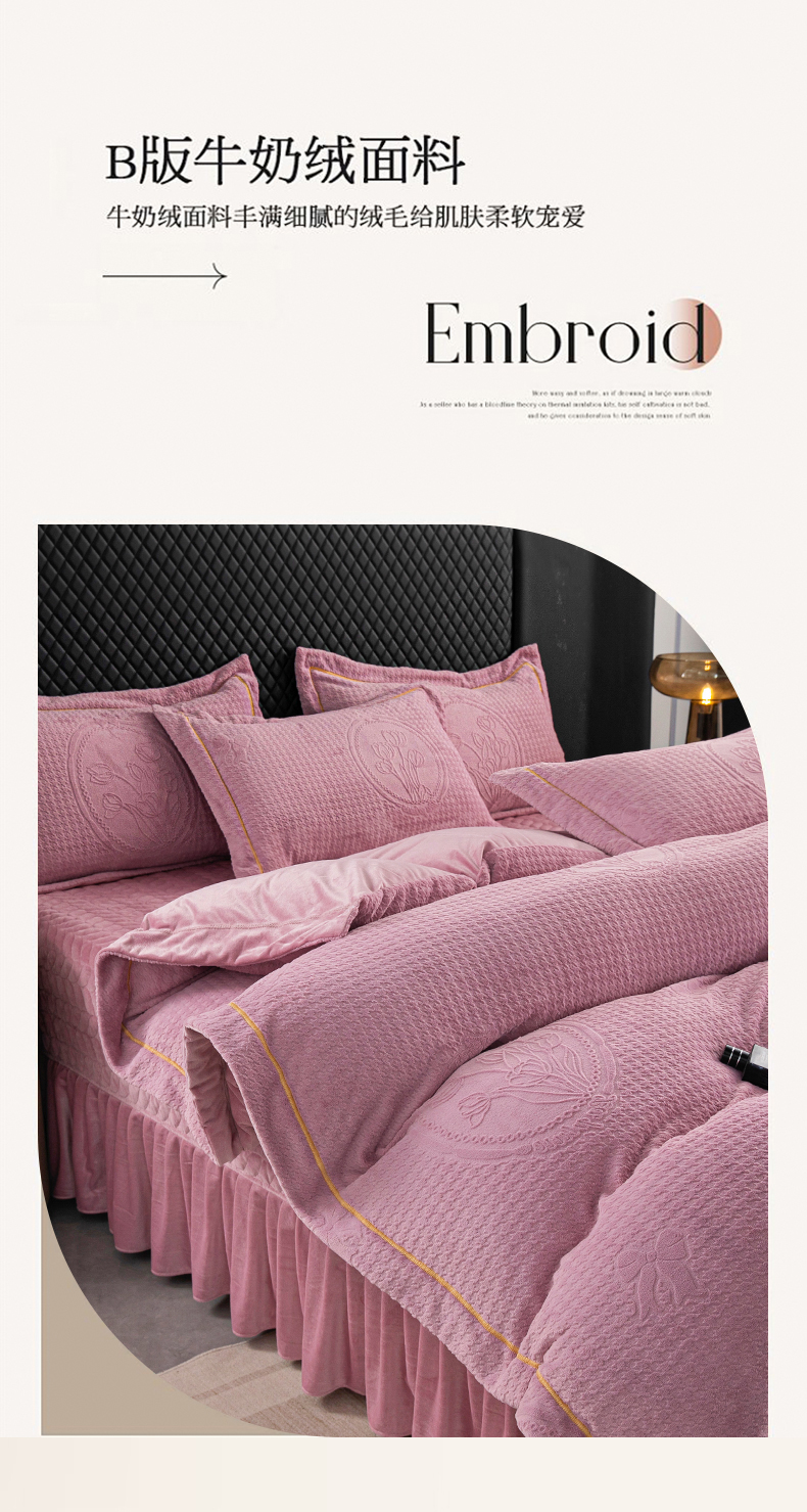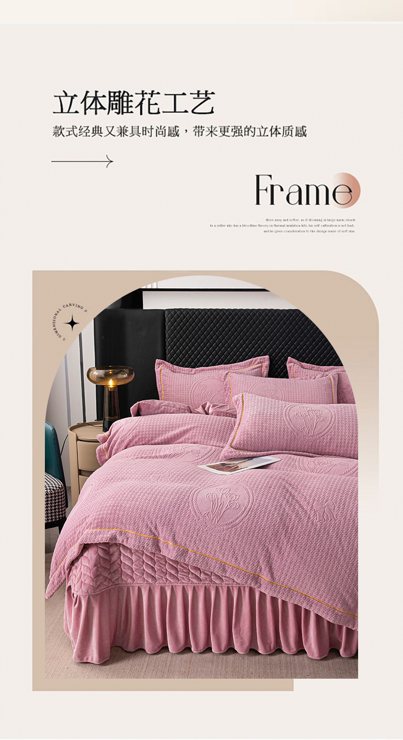 商品名称:莉迪娅 2026新款立体雕花牛奶绒床盖四件套-轻奢花语 轻奢花语-豆沙