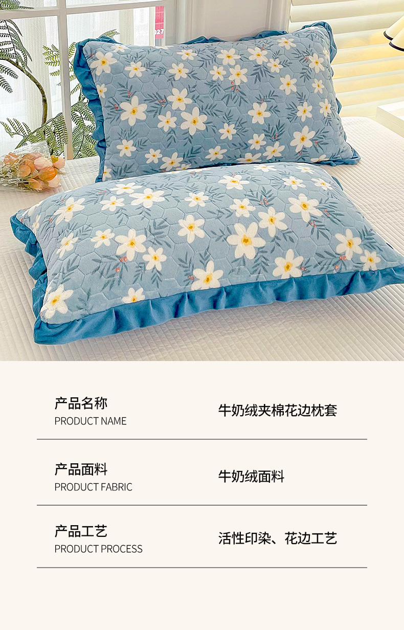 商品名称:莉迪娅 2026新款法兰绒花边枕套牛奶绒枕套韩版枕套 樱花绿