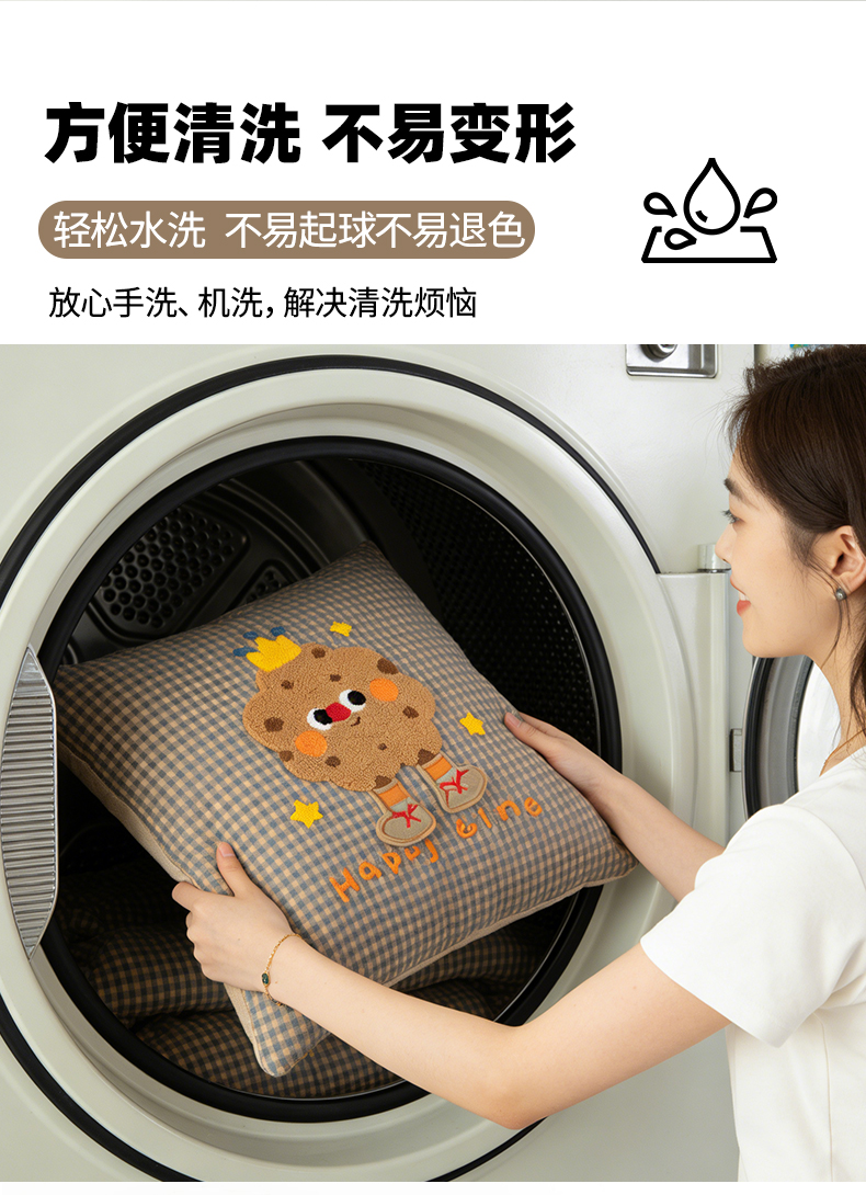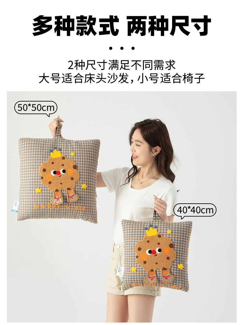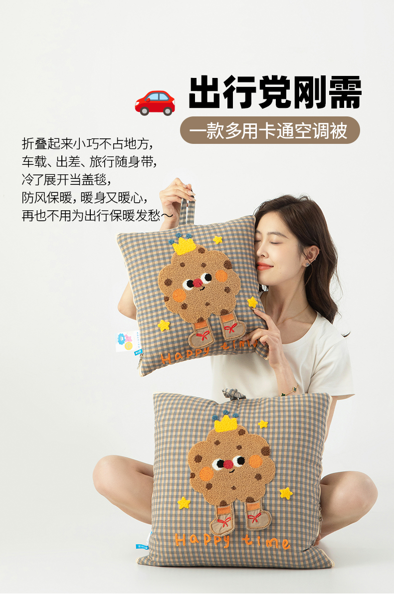 (总)雷娜家居 2025款加厚牛奶绒Happy Toast贴布绣抱枕被,藏青,橙橘,豆绿,海蓝,湖绿,暖玉色,深灰,温柔紫