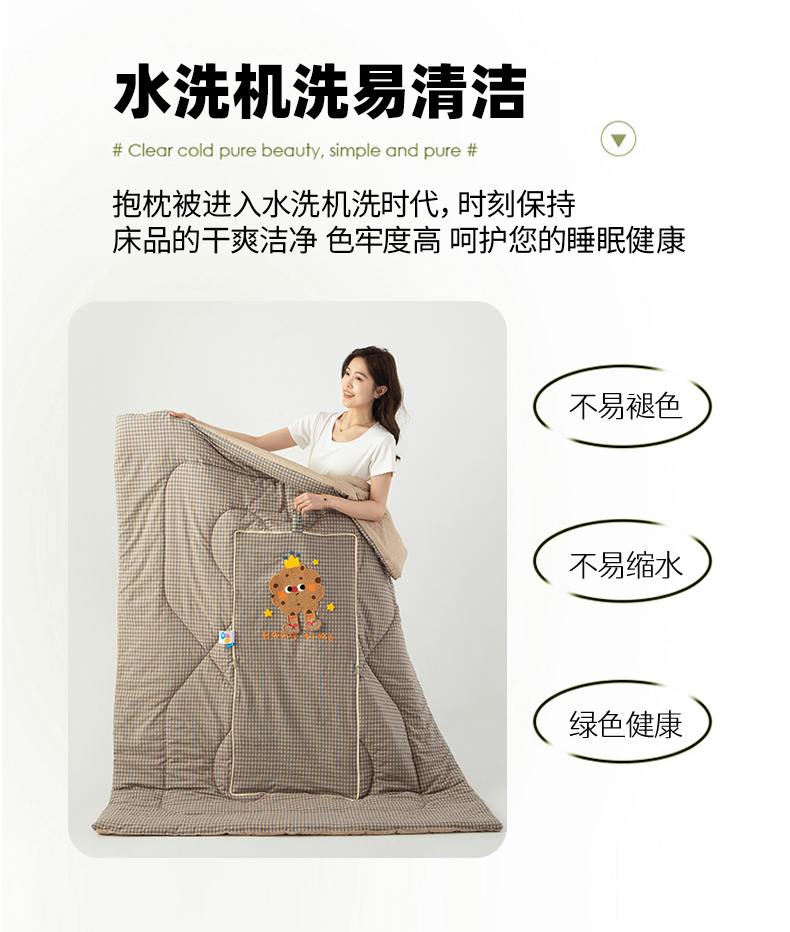 (总)雷娜家居 复合凉感 简约商务款抱枕被,商务卡其,商务灰,商务粉,商务紫,商务绿,商务蓝