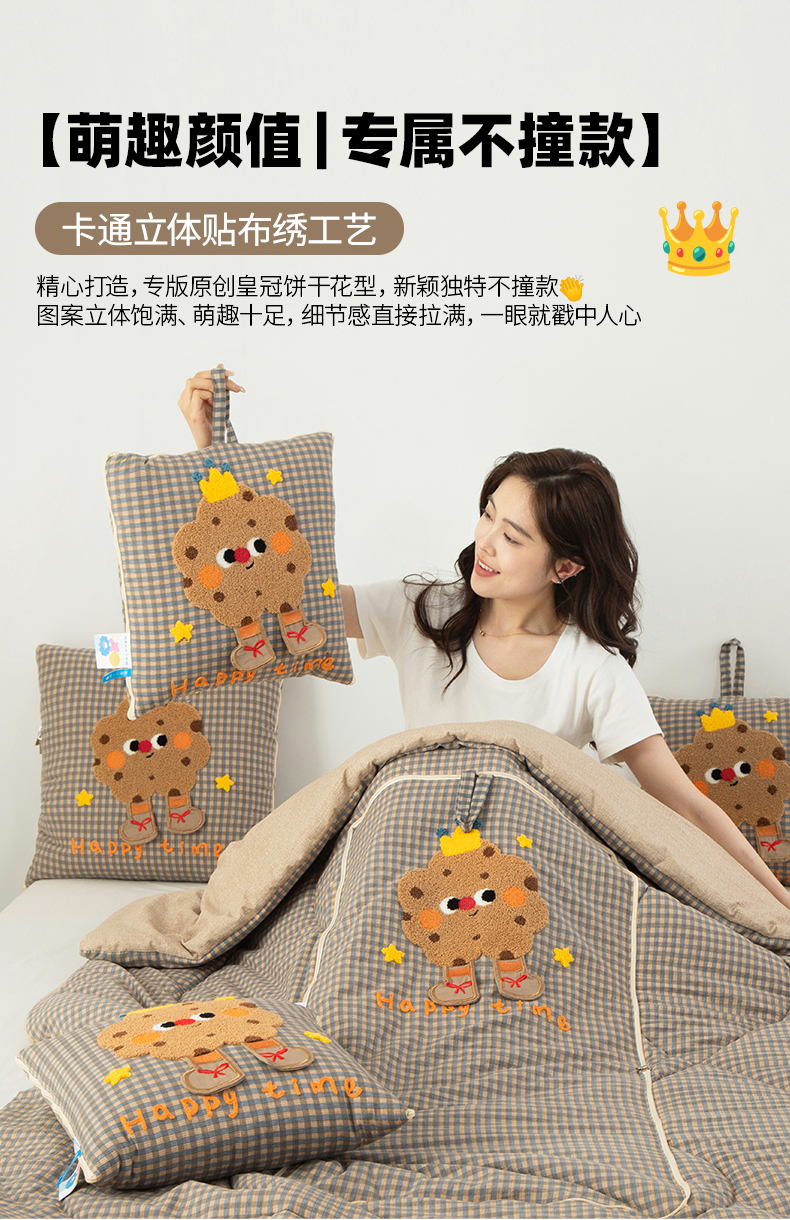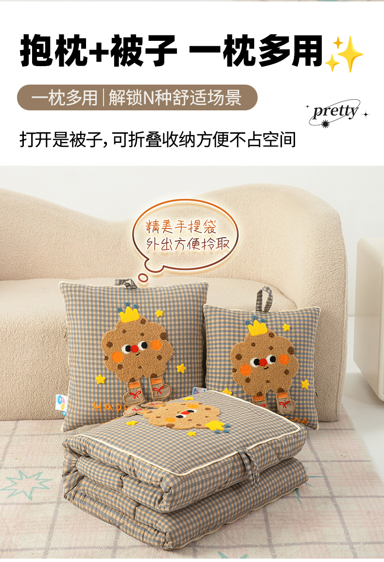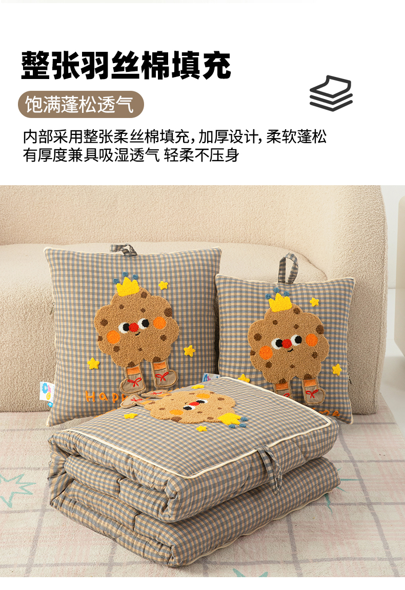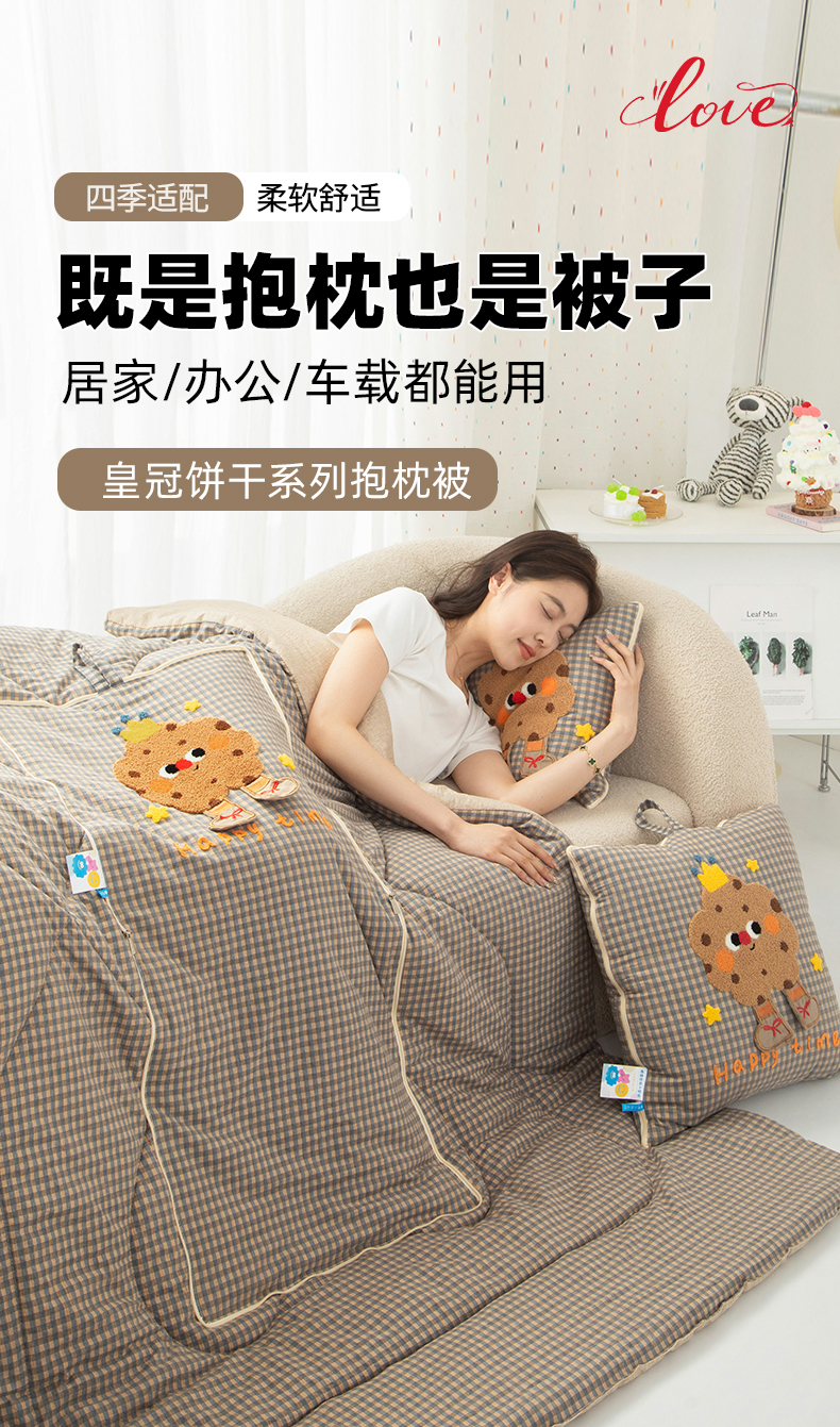 商品名称:雷娜家居 2026新款升级款皇冠饼干抱枕被 皇冠饼干咖