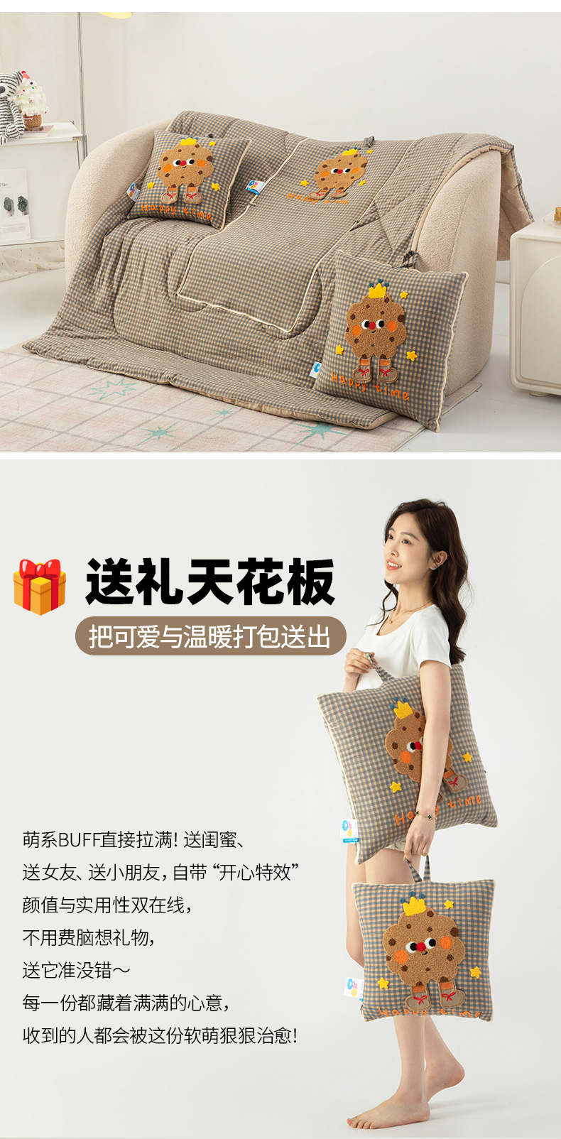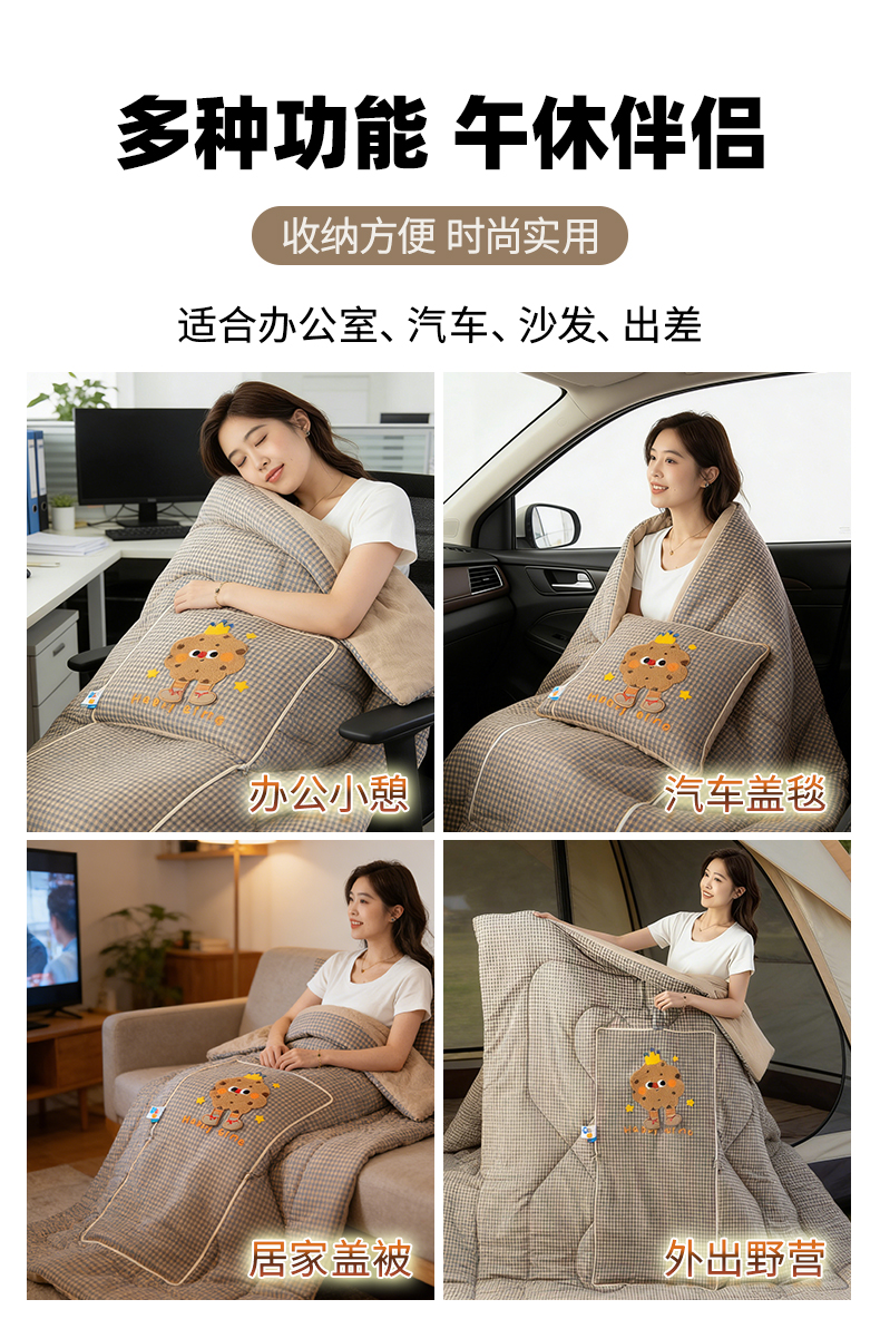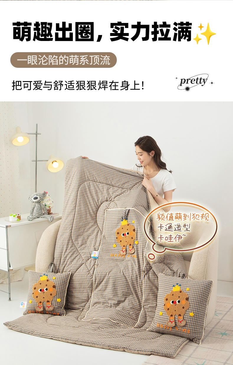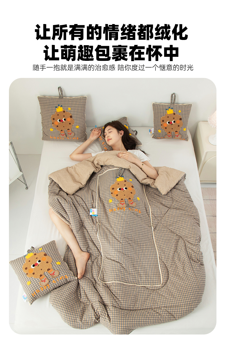 商品名称:雷娜家居 2026新款升级款皇冠饼干抱枕被 皇冠饼干咖