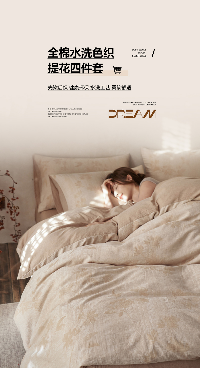 当前位置: 91家纺网 > 商品网购 > 床品套件 > 四件套 > 全棉普通四件套 > 如一 2026春夏新款色织提花全棉纯棉水洗棉四件套 兰序-咖