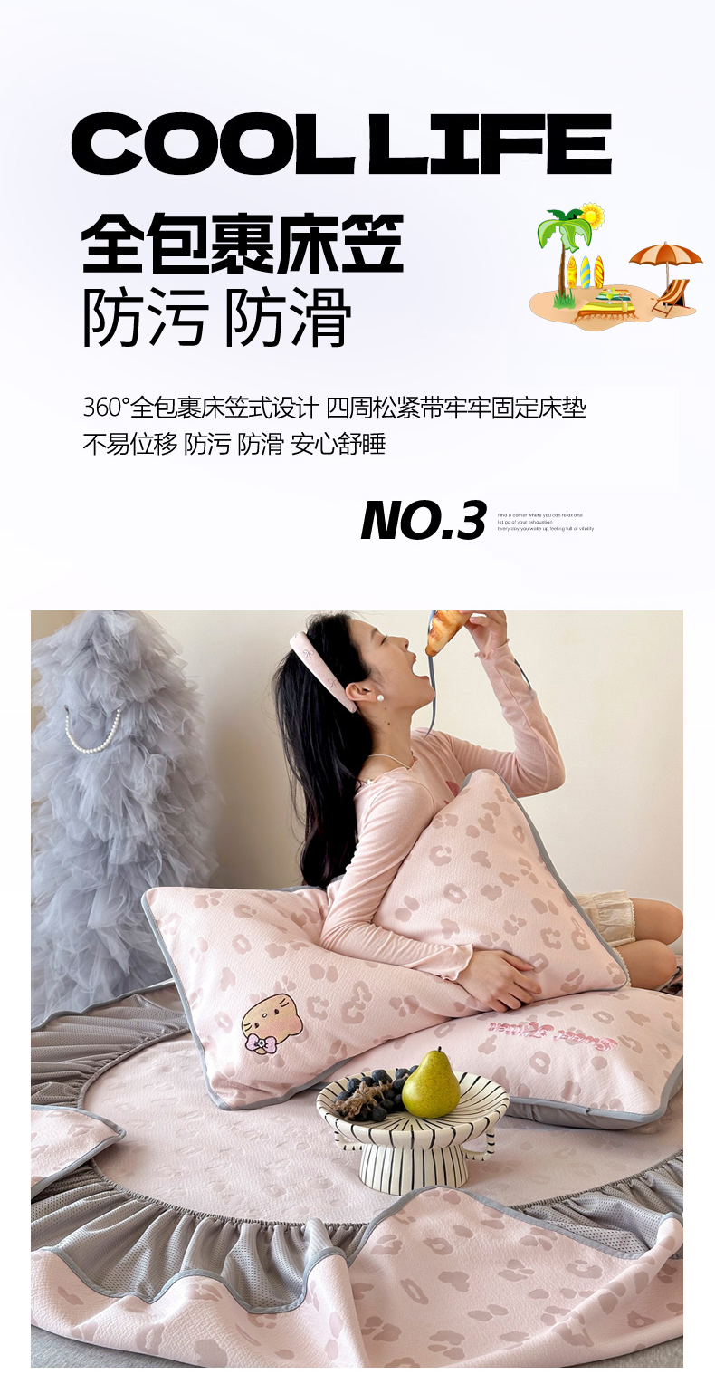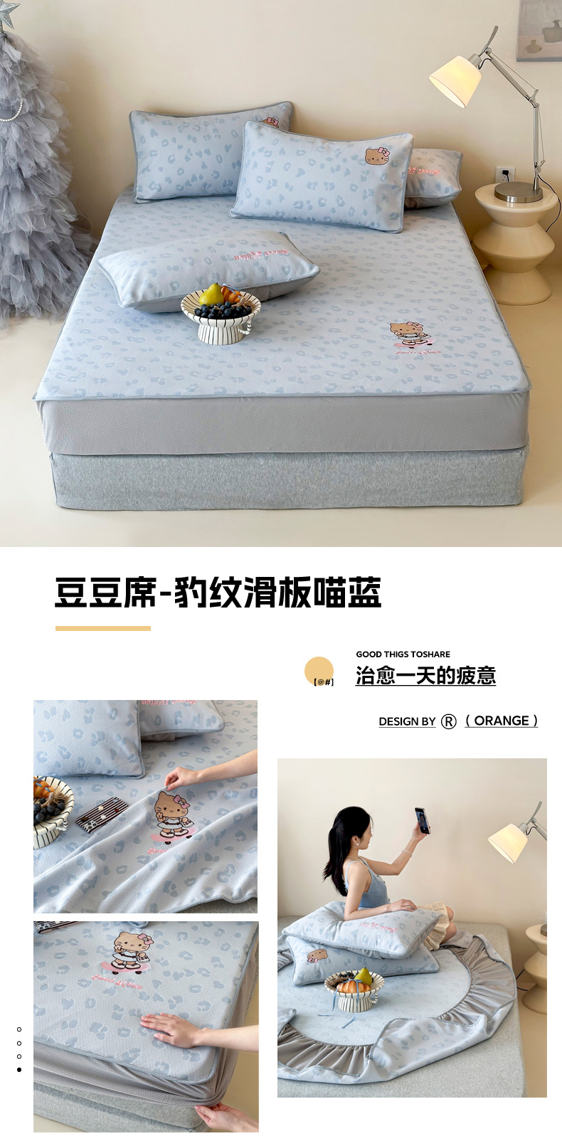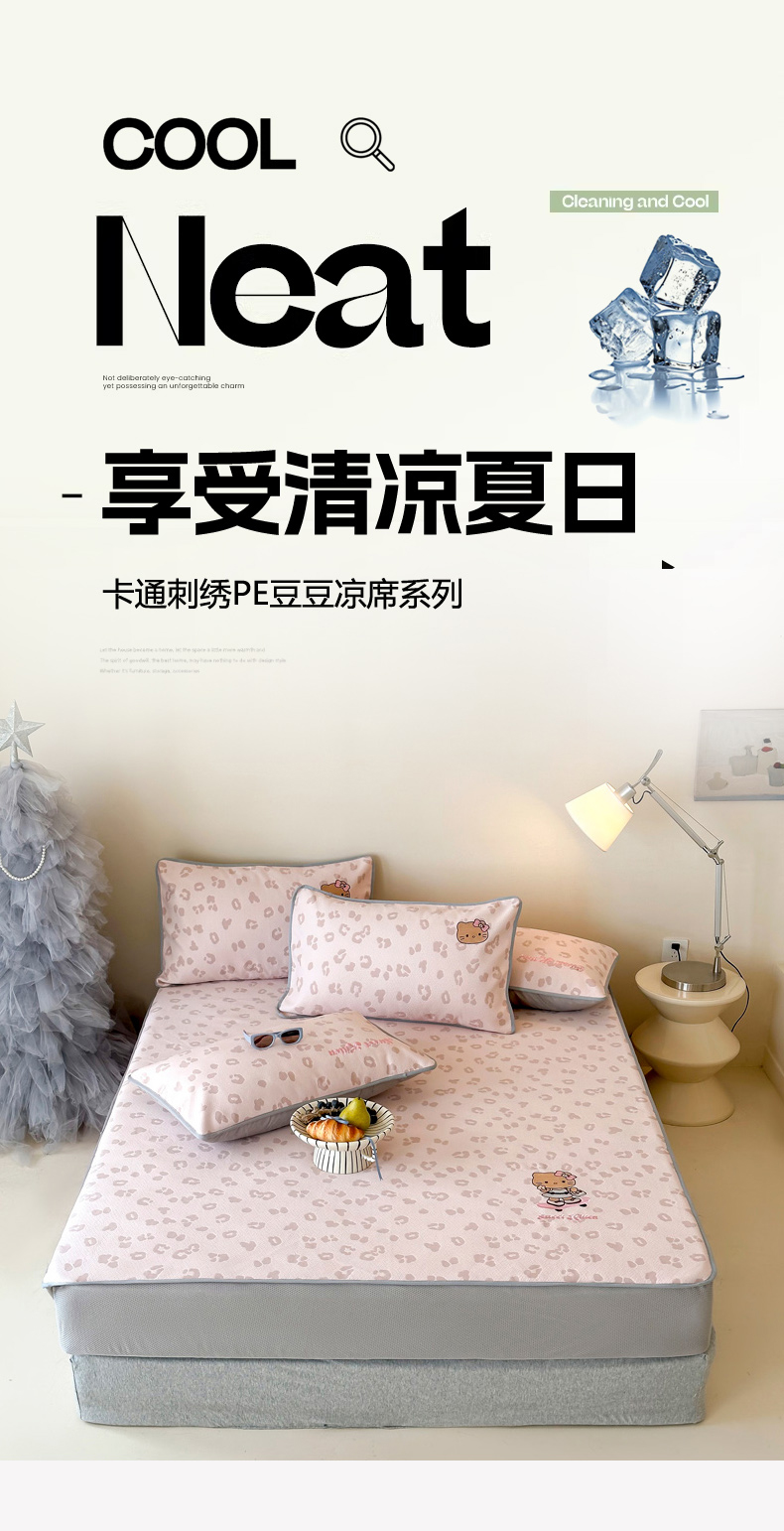 (总)沐慕 2026新款卡通绣花PE凉感豆豆床笠款凉席席子,组合图仅做展示不可下单,豆豆席-豹纹滑板喵粉,豆豆席-豹纹滑板喵咖,豆豆席-豹纹滑板喵蓝