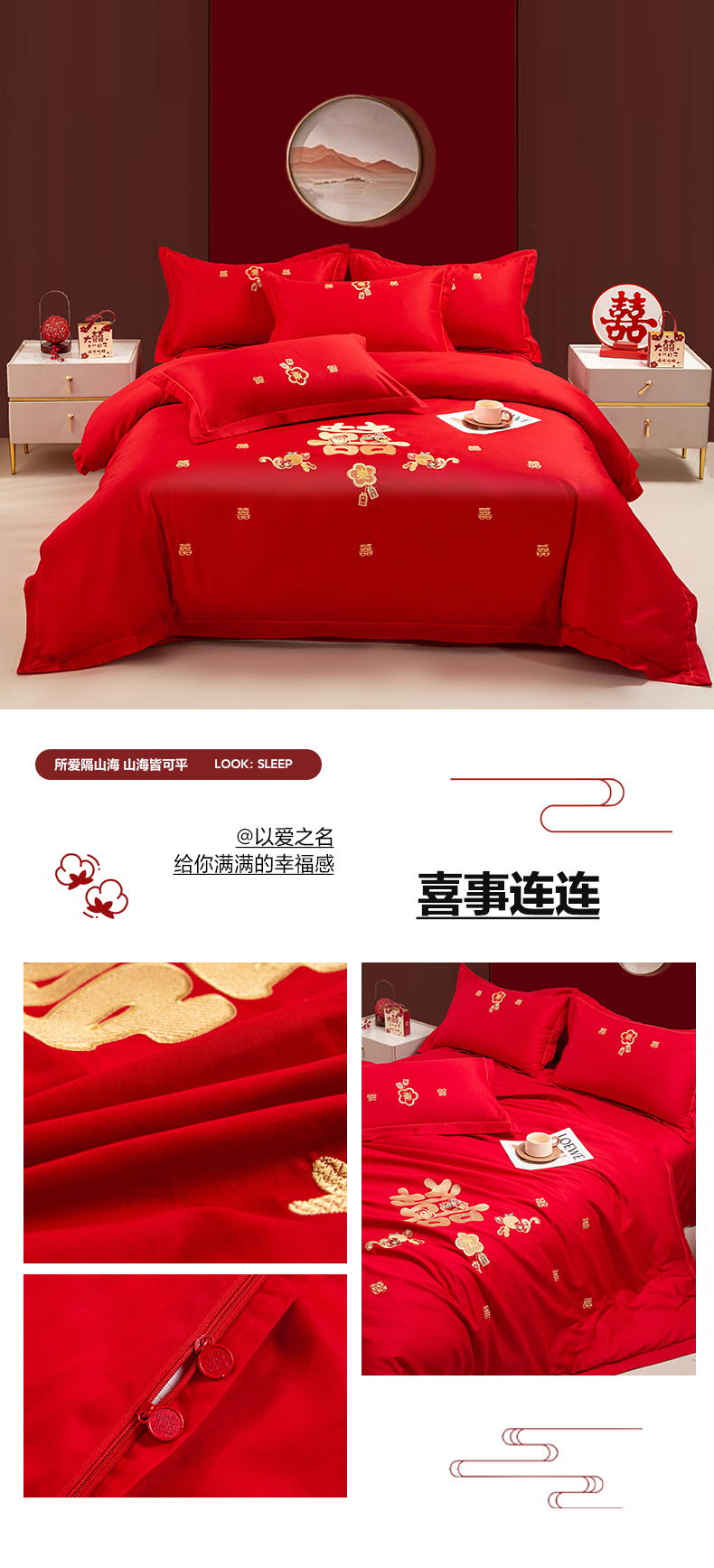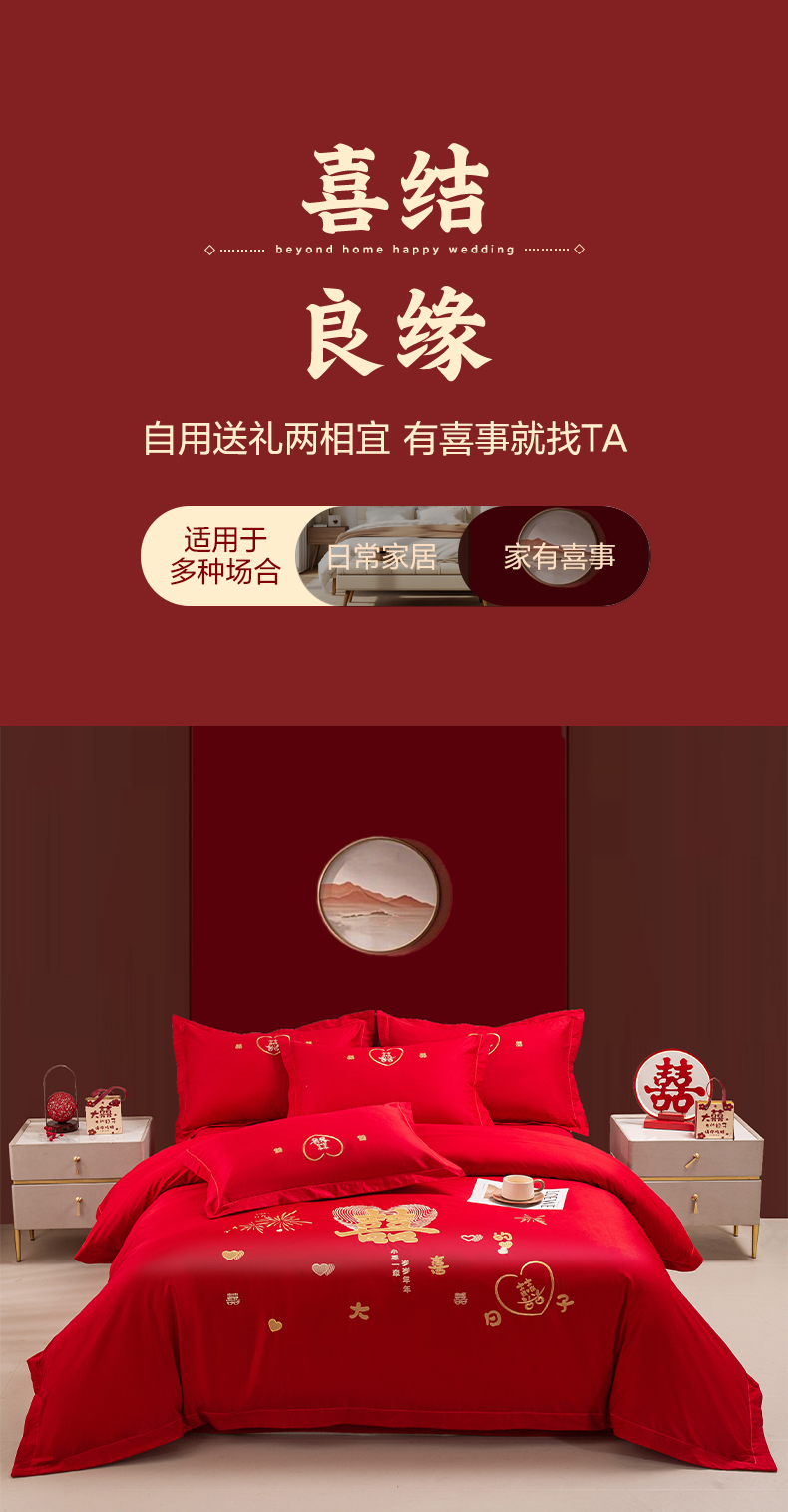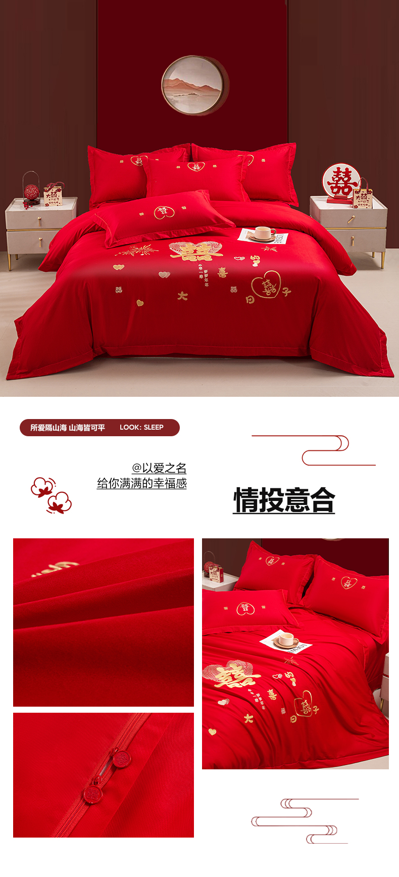 (总)银石 2024新款60新疆长绒棉大红婚庆绣花四件套,倾心一片,山河见证,心心相印,永结同心,浪漫时刻,吉祥如意,龙凤报喜