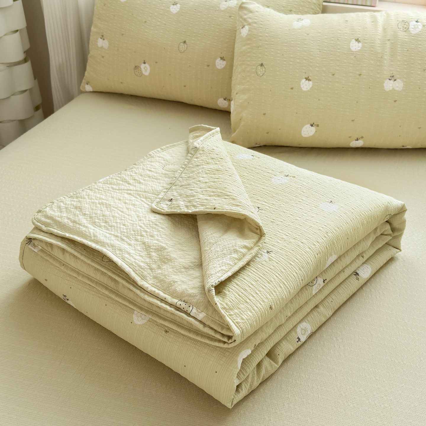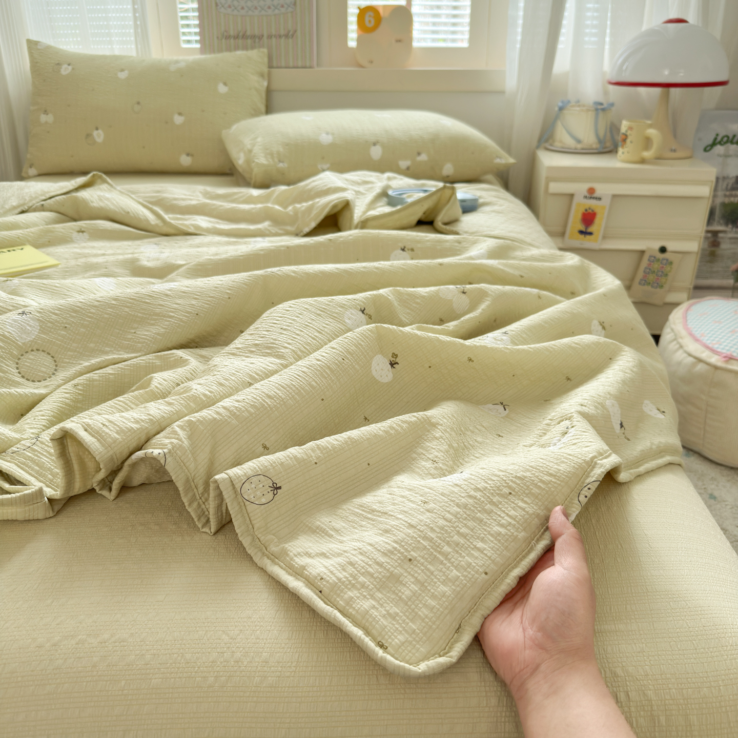 (总)德比尔斯 2026新款7D豆豆韩版泡泡纱单夏被夏被四件套,芥末绿,亮丽黄,蜜桃粉,水蓝,星辰紫