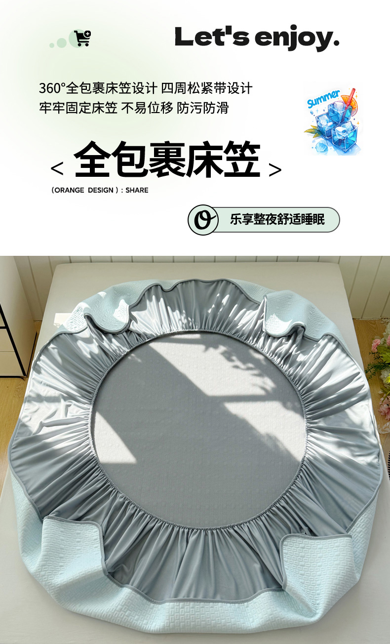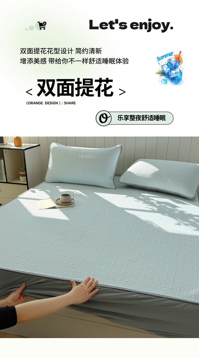 (总)恋佳居 2026新款A类PE中分子凉感丝床裙凉席,冰柔粉蔷薇,冰柔灰蔷薇,冰柔蓝蔷薇,冰沙银丝灰格,冰沙银丝蓝色,冰沙银丝绿格