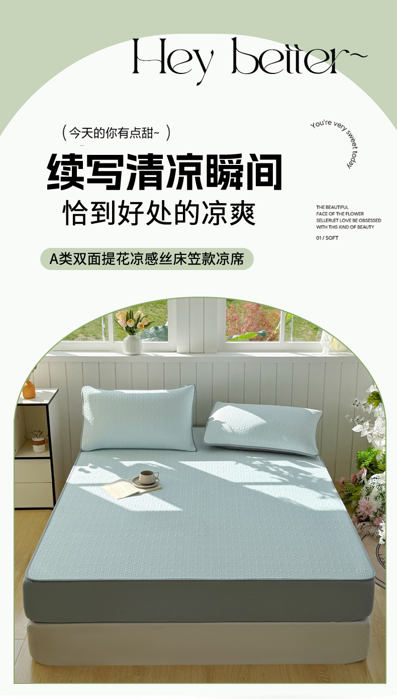 (总)恋佳居 2026新款A类PE中分子凉感丝床笠凉席,冰柔粉蔷薇,冰柔蓝蔷薇,冰沙银丝蓝格,冰纱银丝灰格,冰纱银丝绿格,冰柔灰蔷薇