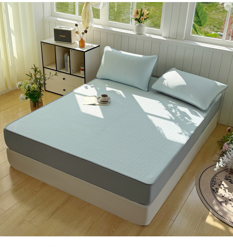 恋佳居 2026新款A类PE中分子凉感丝床笠凉席 冰沙银丝蓝格