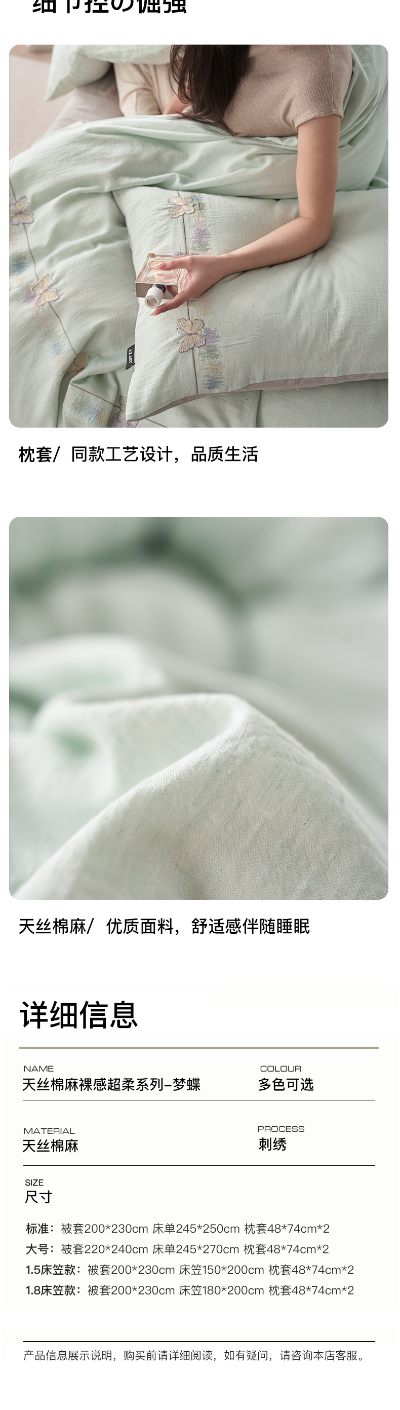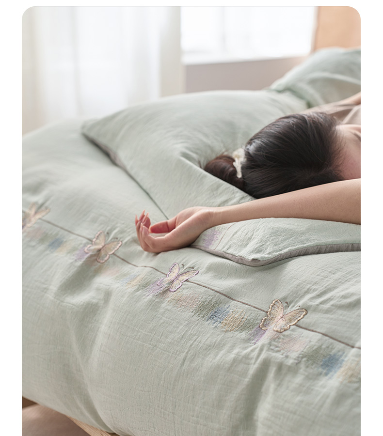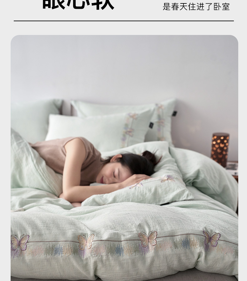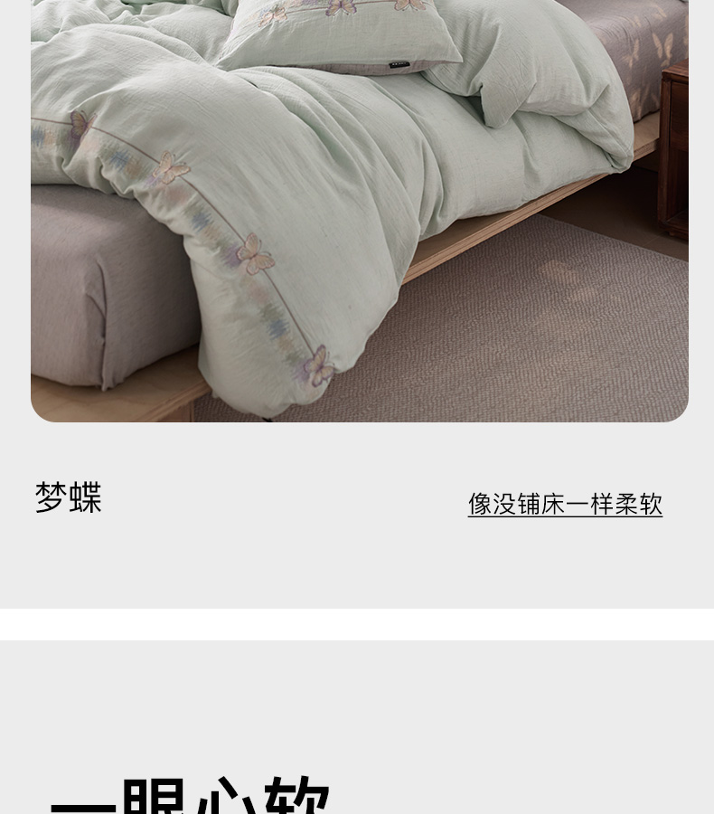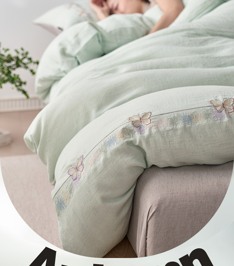 (总)卡姿家纺 2026春夏天丝棉麻裸感超柔四件套— 梦蝶,梦蝶米白,梦蝶浅粉,梦蝶浅蓝