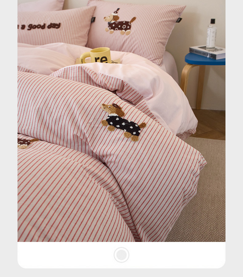 (总)卡姿家纺 全棉色织水洗棉毛巾绣四件套—小狗约克
