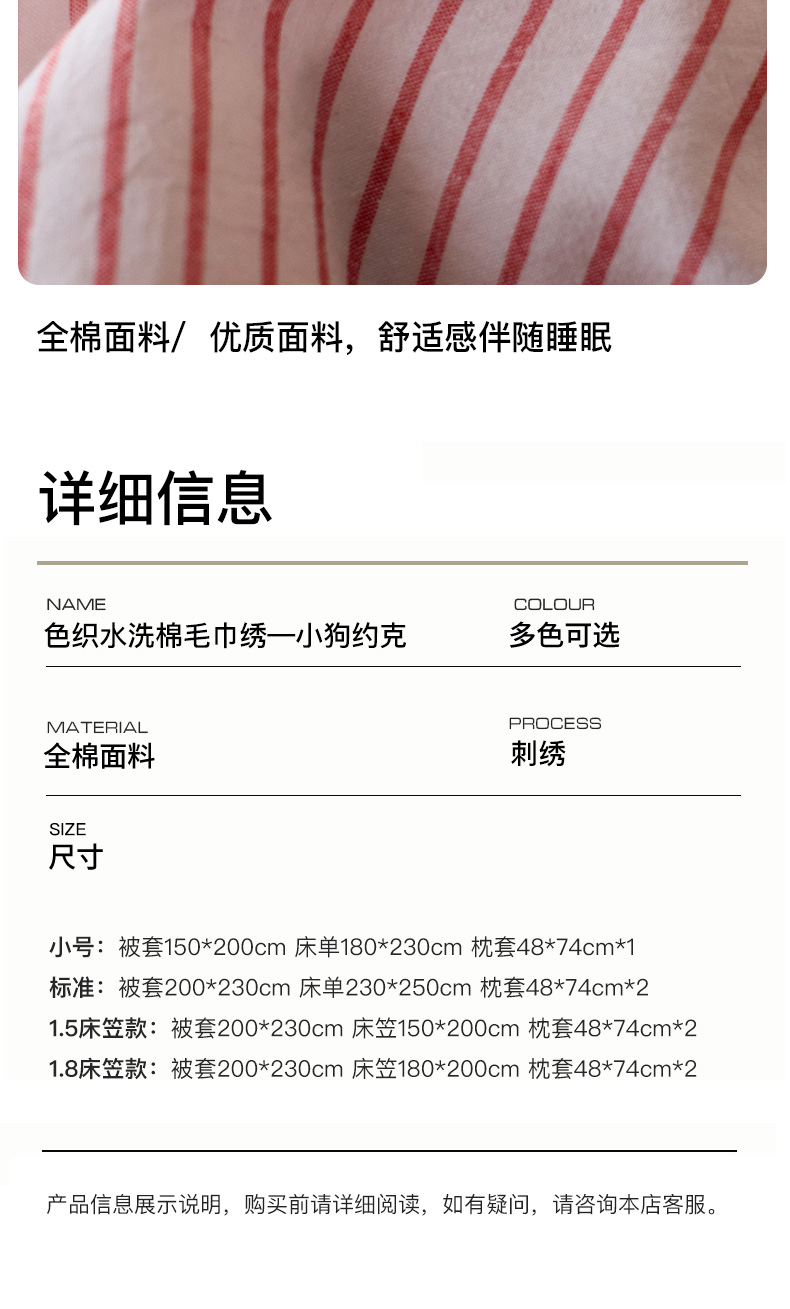 商品名称:(总)卡姿家纺 全棉色织水洗棉毛巾绣四件套—小狗约克