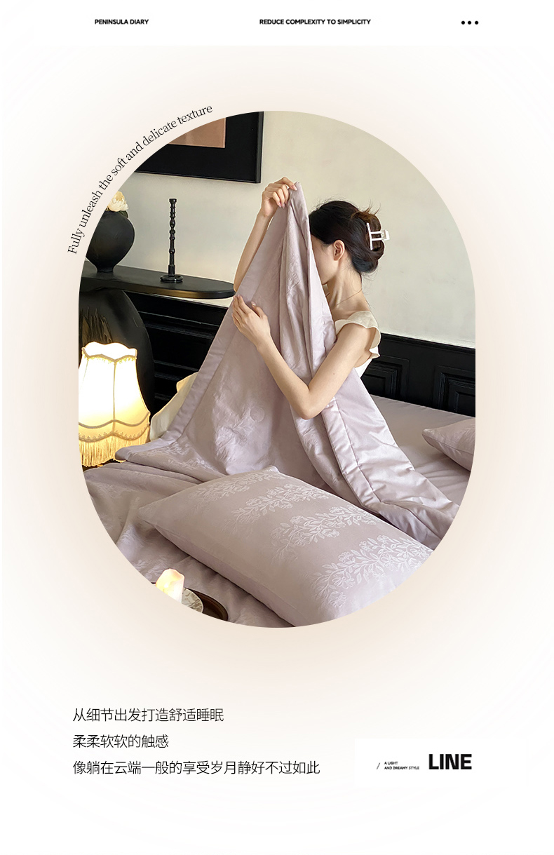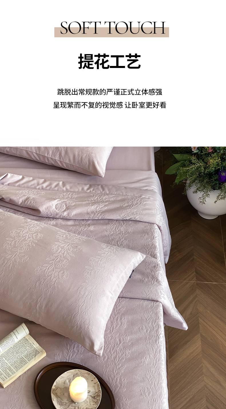 (总)宜代光年 2026新款亚麻大提花贡缎磨毛四件套系列 侘寂风花型系列,斑驳-米麻,观花芷-米麻,观花芷-银灰,清玉絮-葡萄紫,清玉絮-鲜蓝,素简
