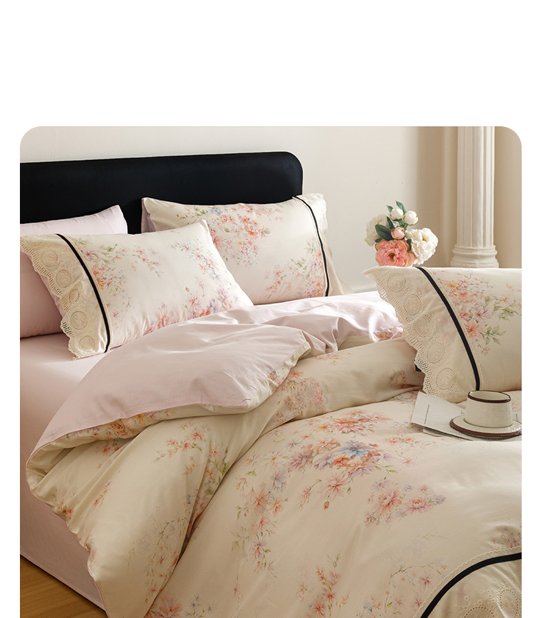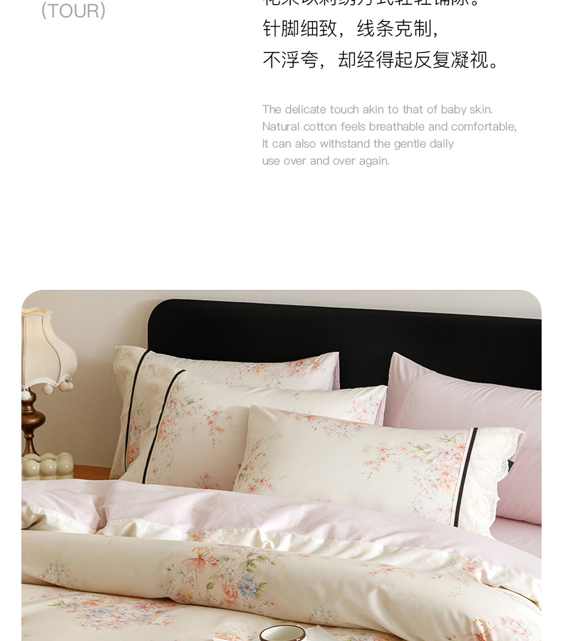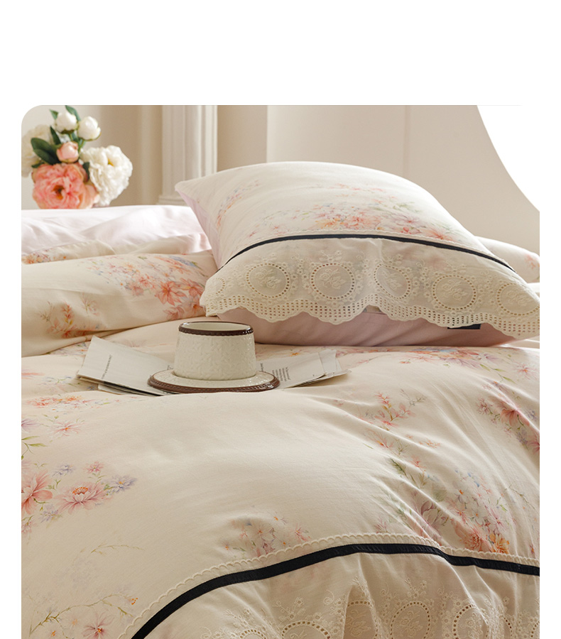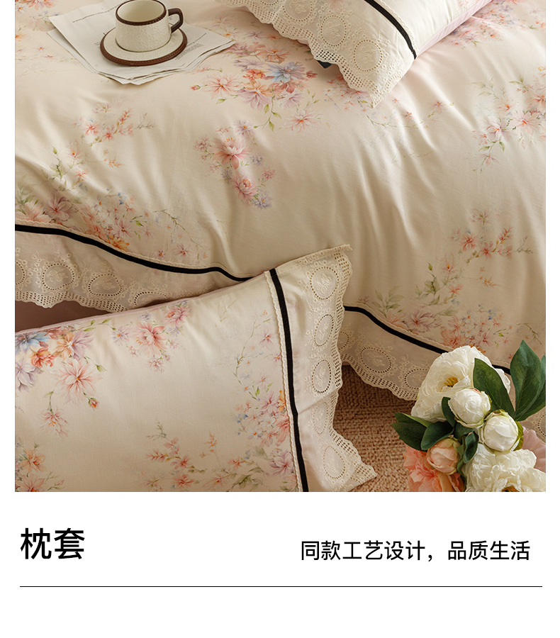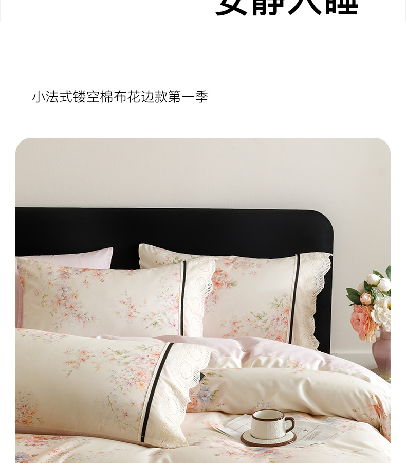 (总)卡姿家纺 全棉小法式镂空棉布花边款第一季四件套,花雾漫纱,玫瑰绘梦,蔷薇诗行,庭前芳序,雾岛听花,絮影轻扬